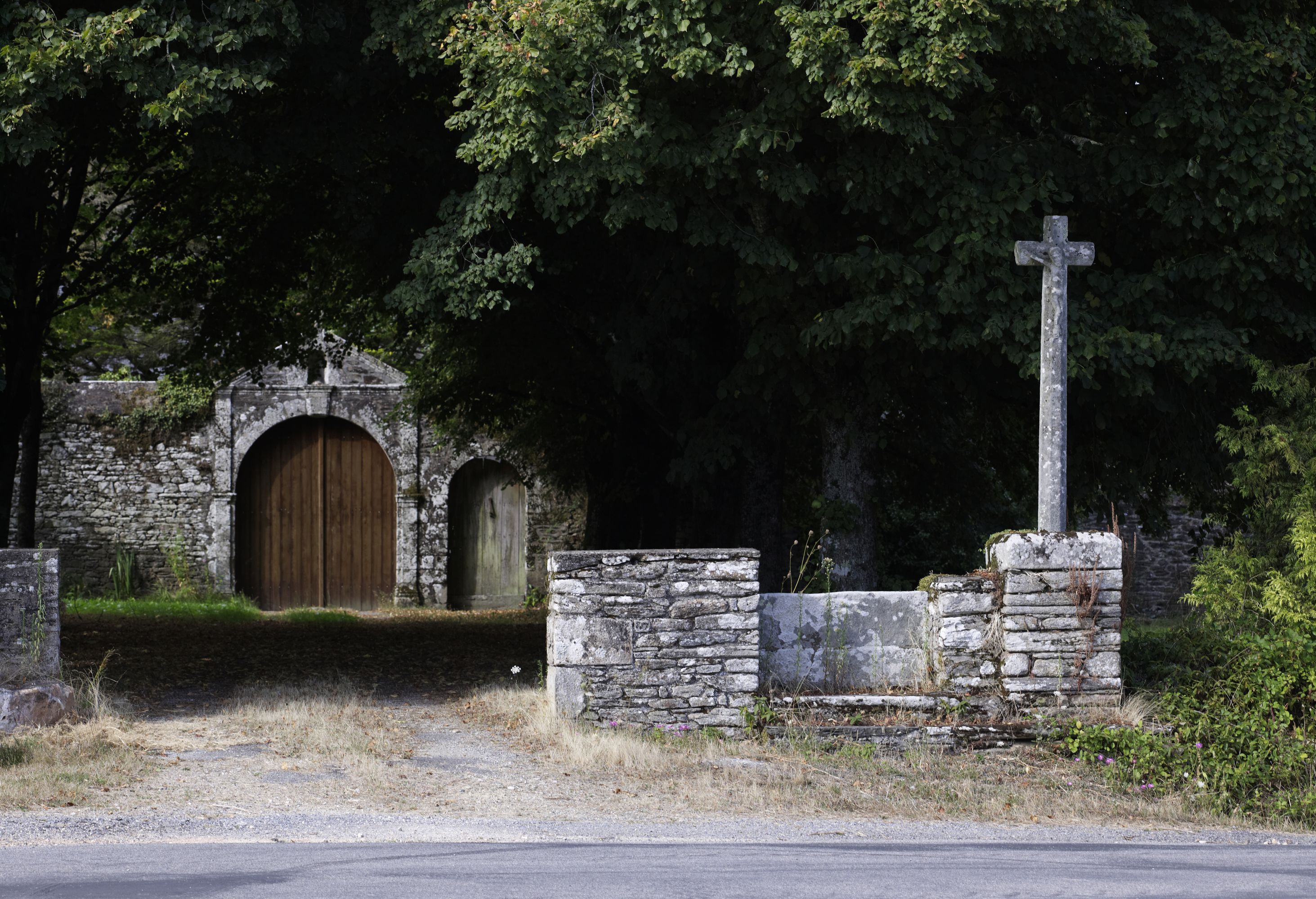 Vue générale prise du sud : portail et croixImmatriculation