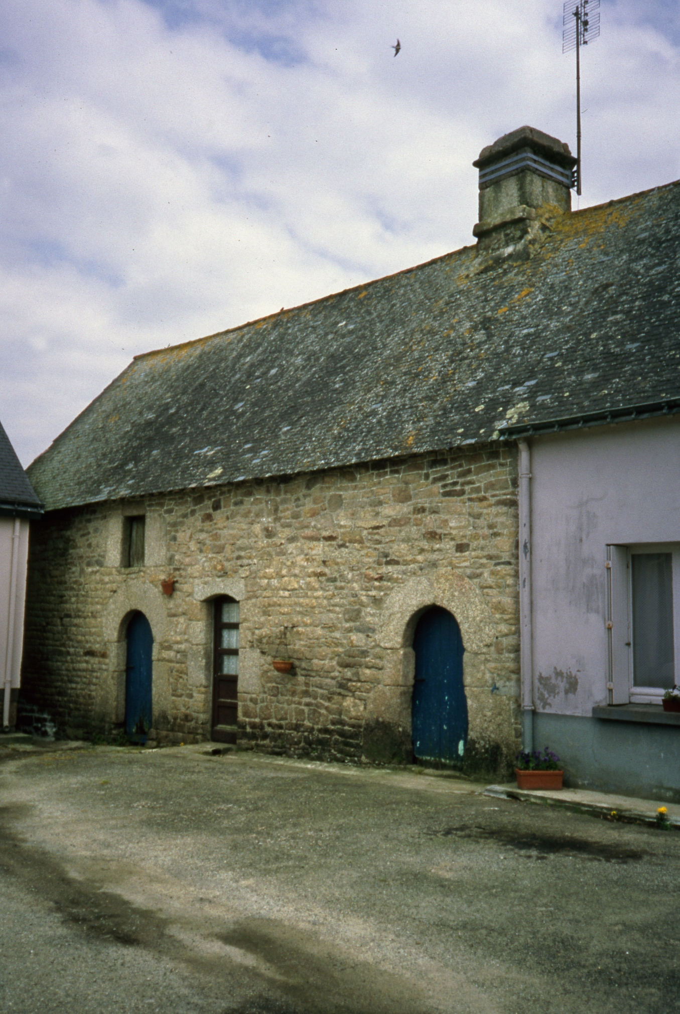 Kerihuel. Logis cellier à deux portes plein cintre, 17e siècle. Logis séparé d'un étroit cellier par un mur sur lequel s'appuie la cheminéeImmatriculation