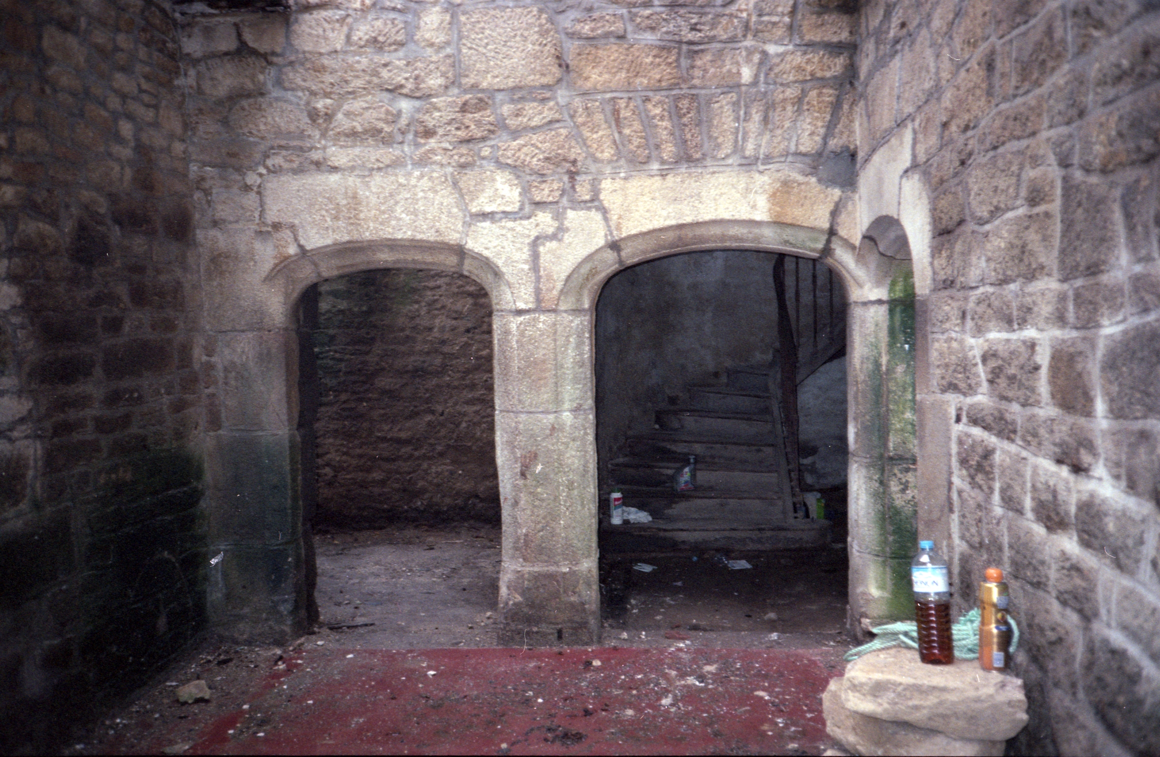 Couloir, vue des portes jumelées distribuant escalier et cellier, ainsi que la porte desservan la pièce est disparue, état en 1999Immatriculation