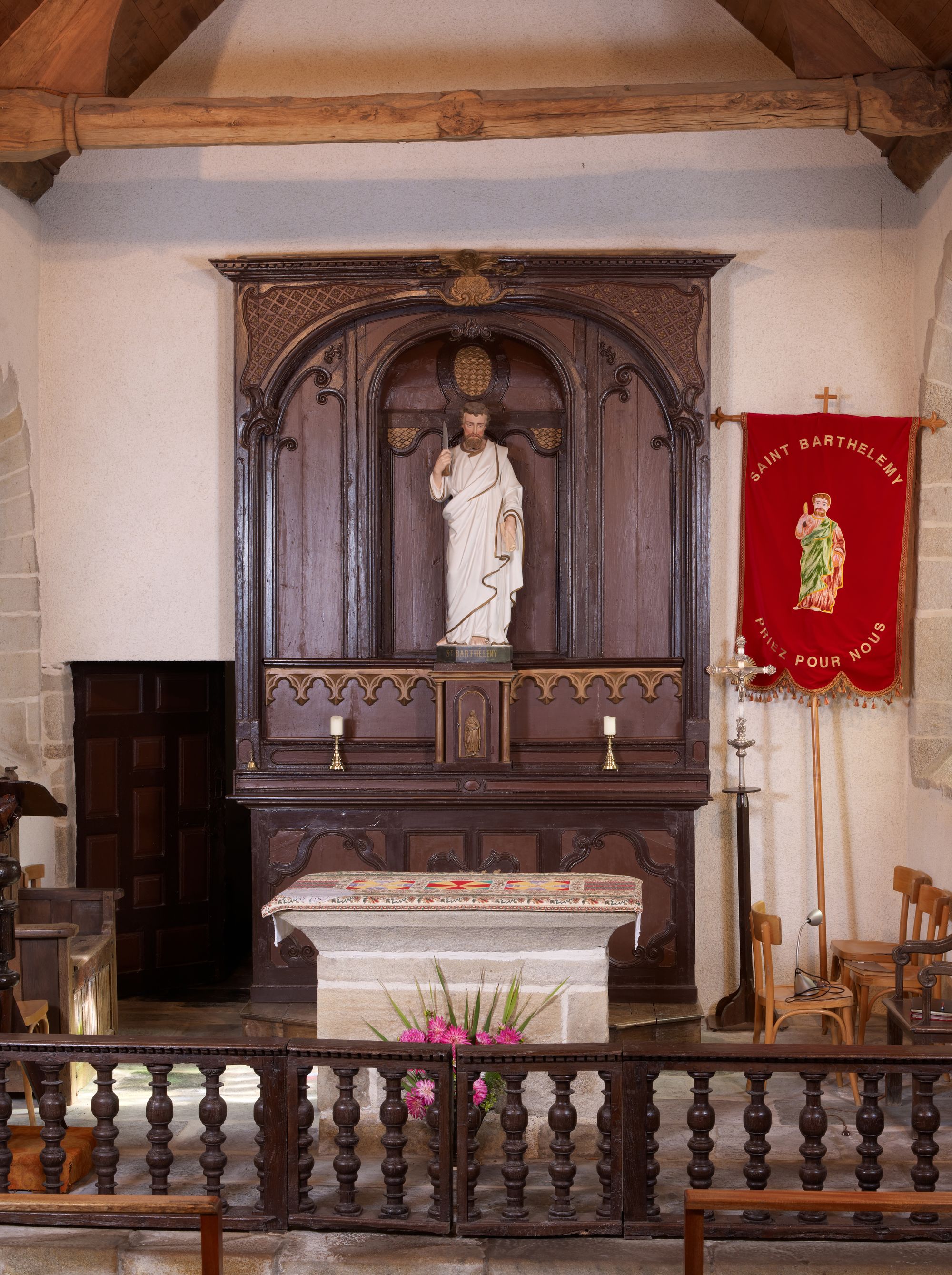 Ensemble du maître-autel : autel, retable, tabernacle, 2 gradins d'autel, chapelle Saint-Barthélemy (Pleucadeuc),