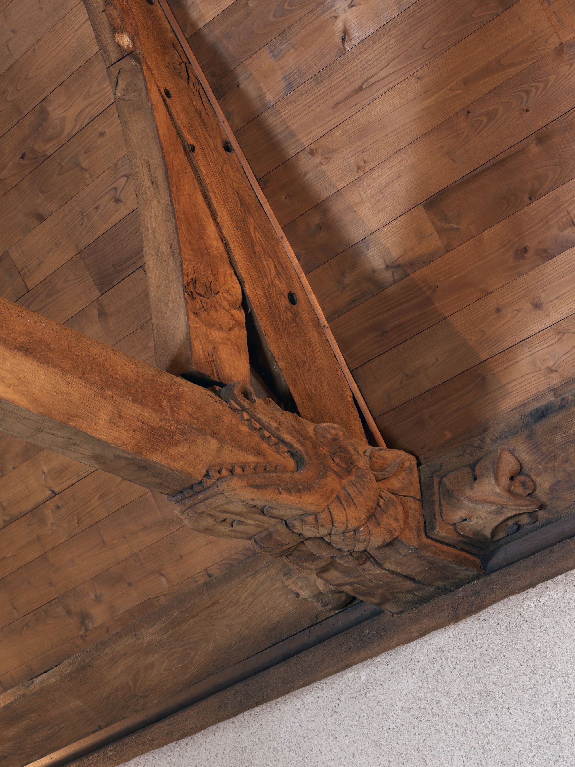 Chapelle, bras nord du transept, extrémité est de l'entrait : engoulant (état en 2013)Immatriculation