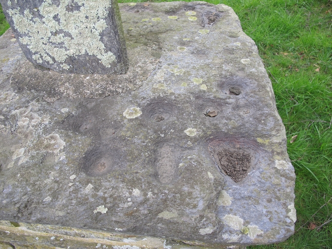 Croix monumentale, dalle couvrant le soubassement : détail d'une cupule (état en 2013)Immatriculation