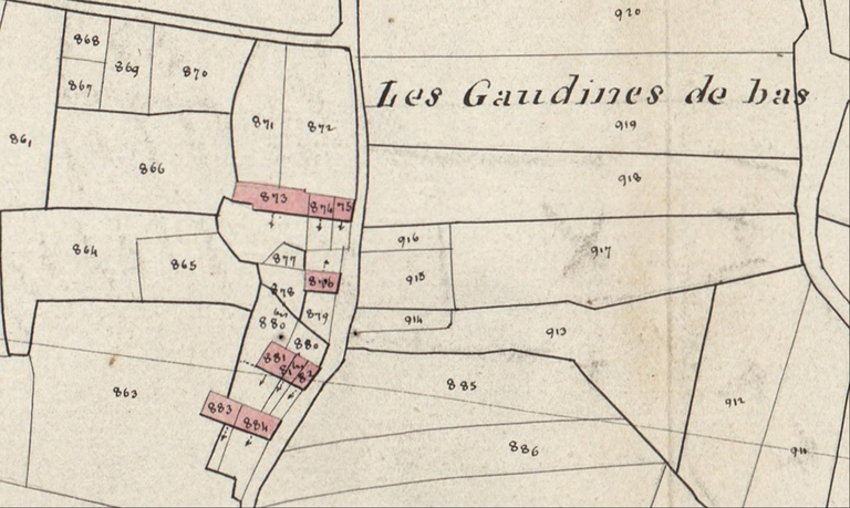 Les Gaudines de bas sur le cadastre de 1825 (A. D. Morbihan, 3 P 269/6)Immatriculation