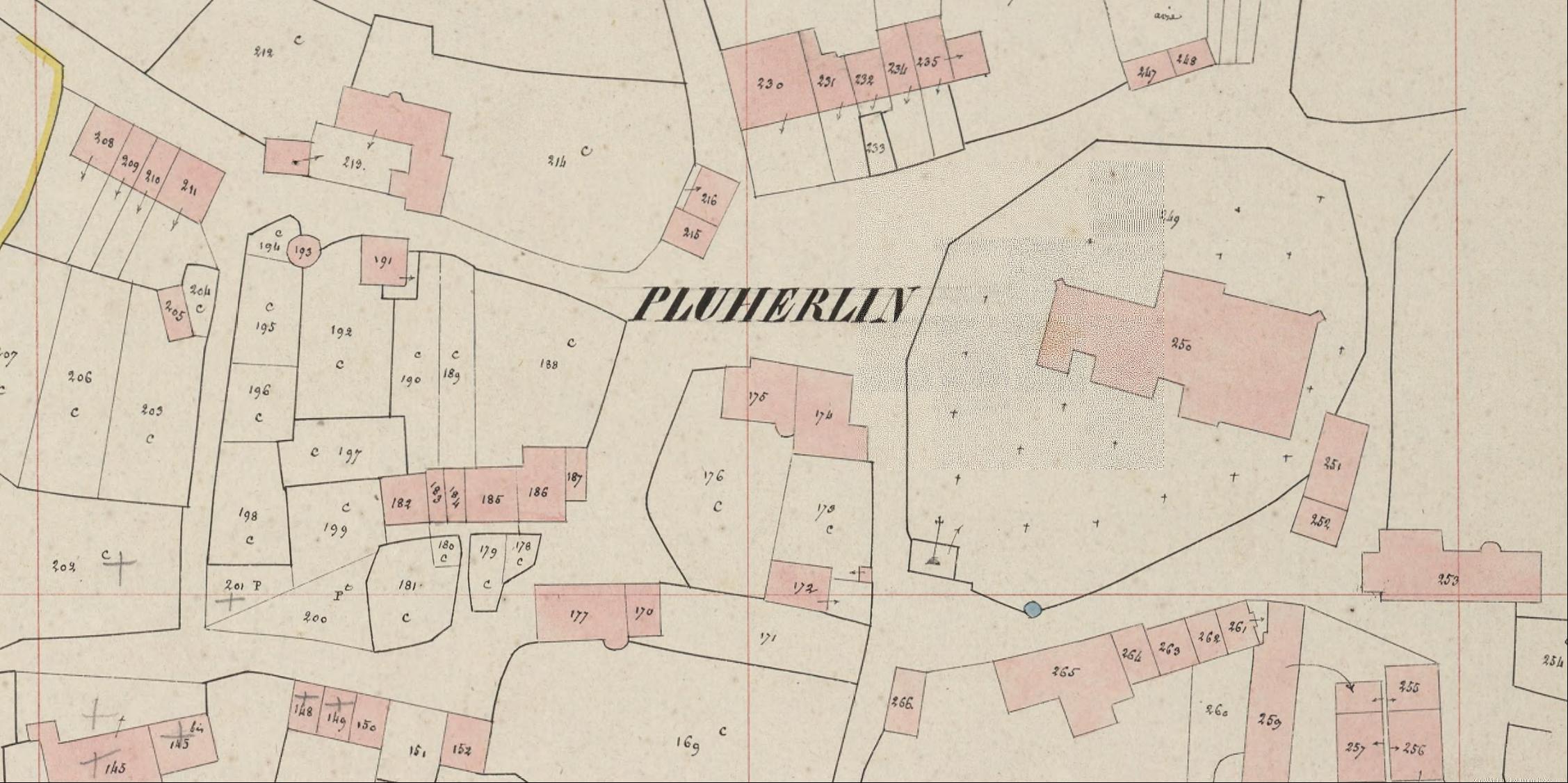 Le bourg. Extrait du plan cadastral de 1840 (A.D Morbihan 3 P 217)Immatriculation