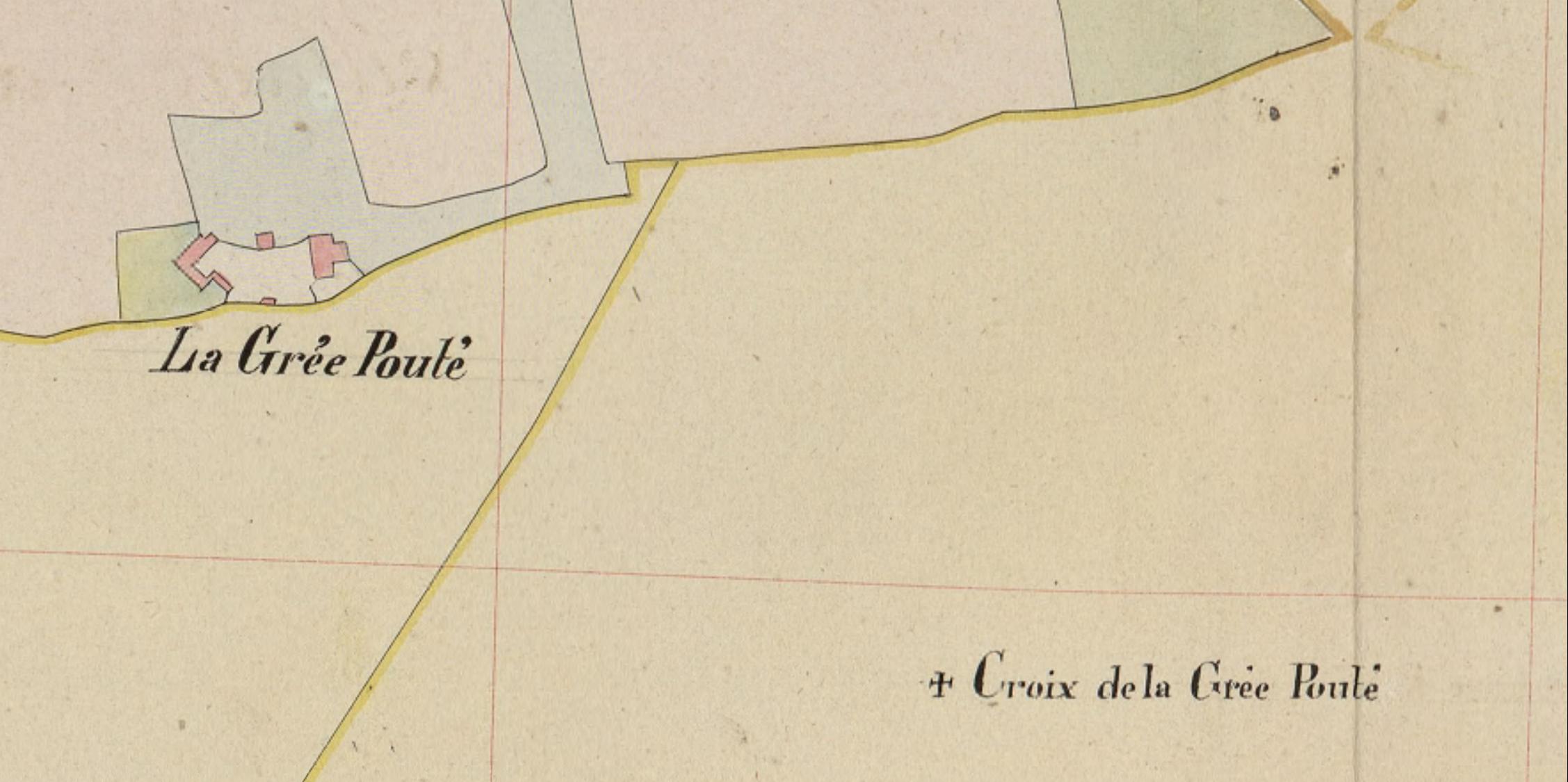 La Grée Pouté. Extrait du tableau d'assemblage du plan cadastral de 1840 (AD Morbihan, 3 P 217)Immatriculation