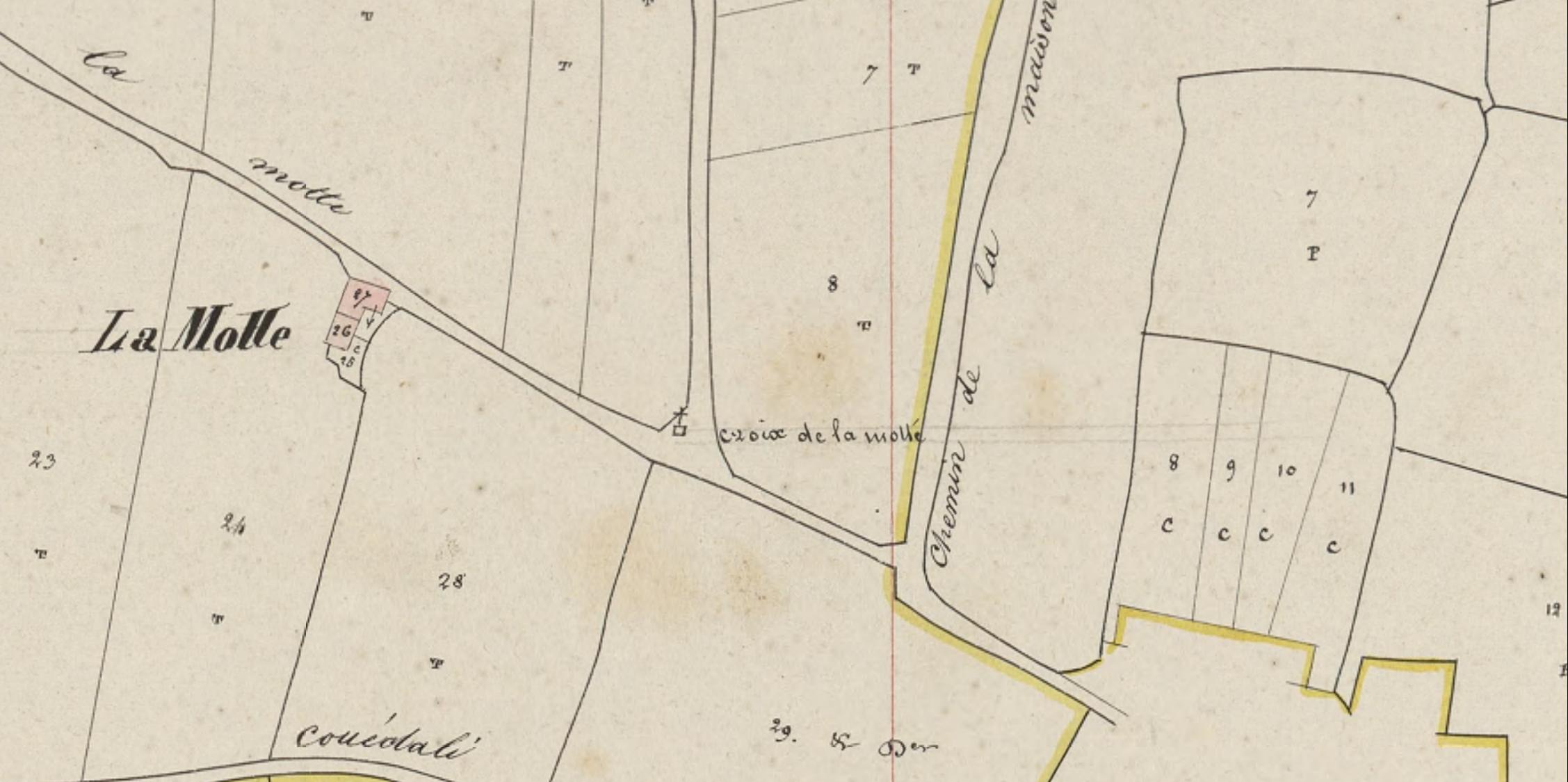 Croix de La Motte. Extrait du plan cadastral de 1840 (AD Morbihan 3 P 217)Immatriculation