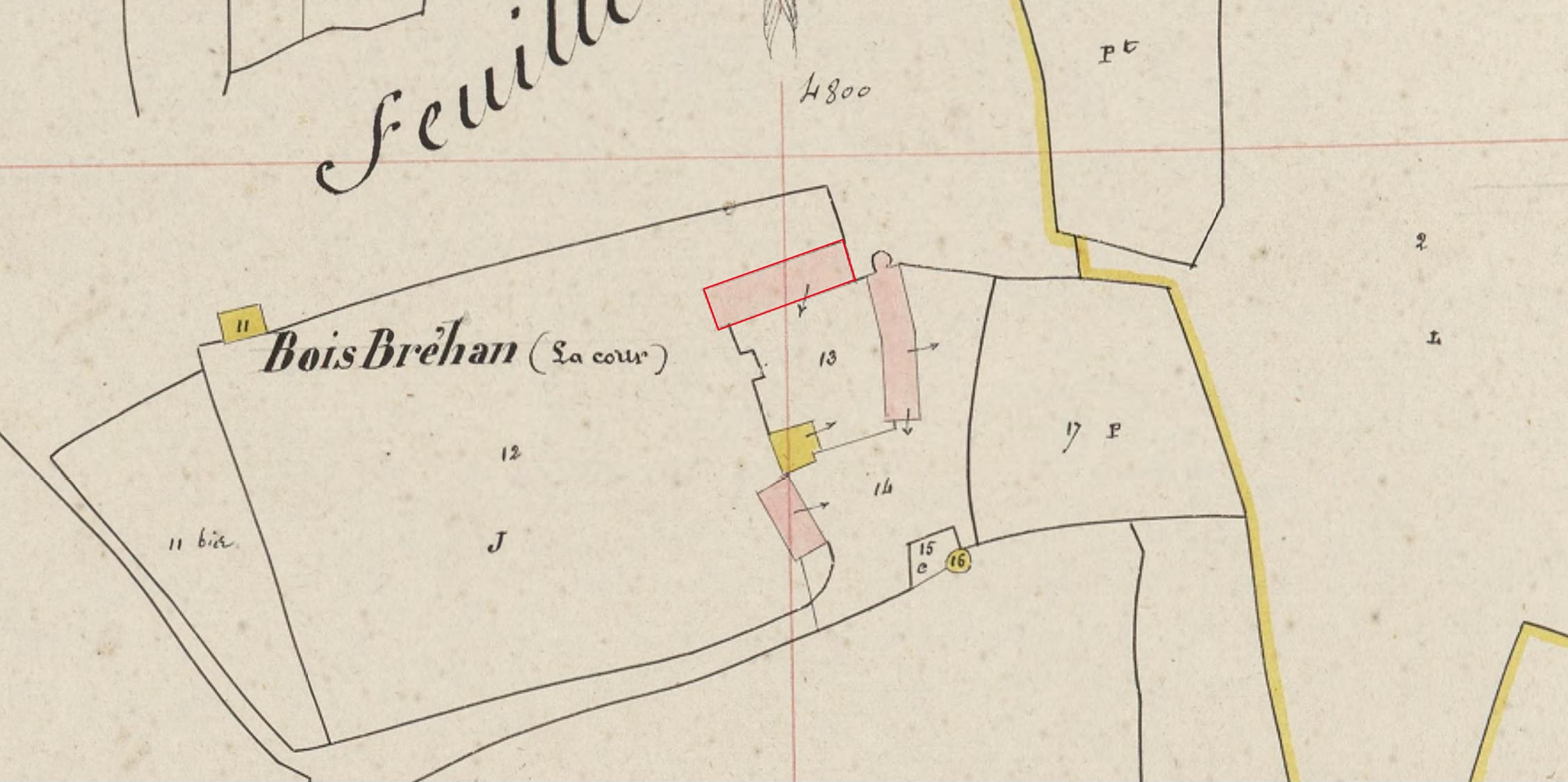 Boisbréhan (La Cour). Extrait du plan cadastral de 1840 (AD Morbihan, 3 P 217)Immatriculation