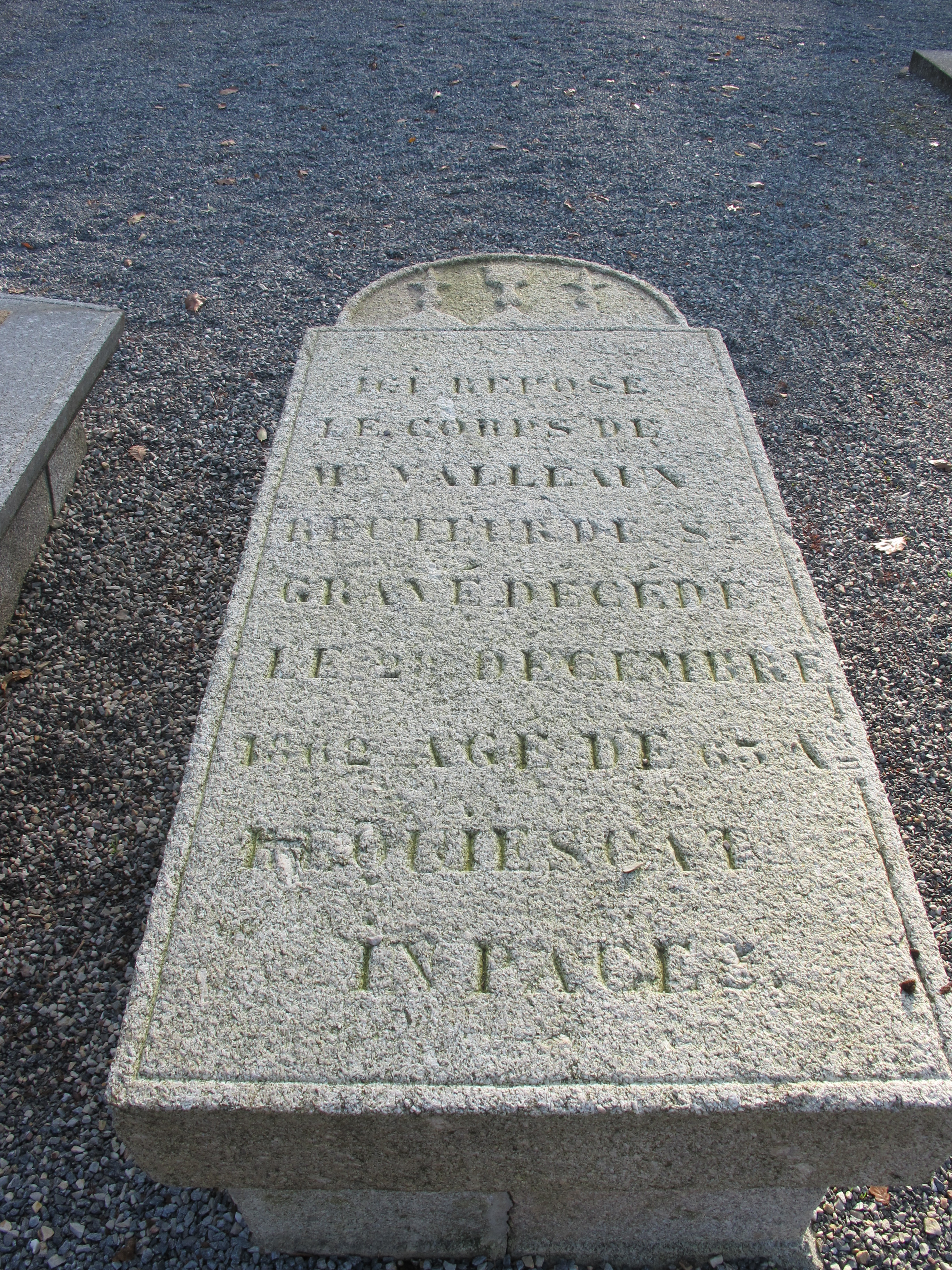 Cimetière, tombe de Messire Valleaux, recteur de Saint-Gravé, décédé en 1862Immatriculation