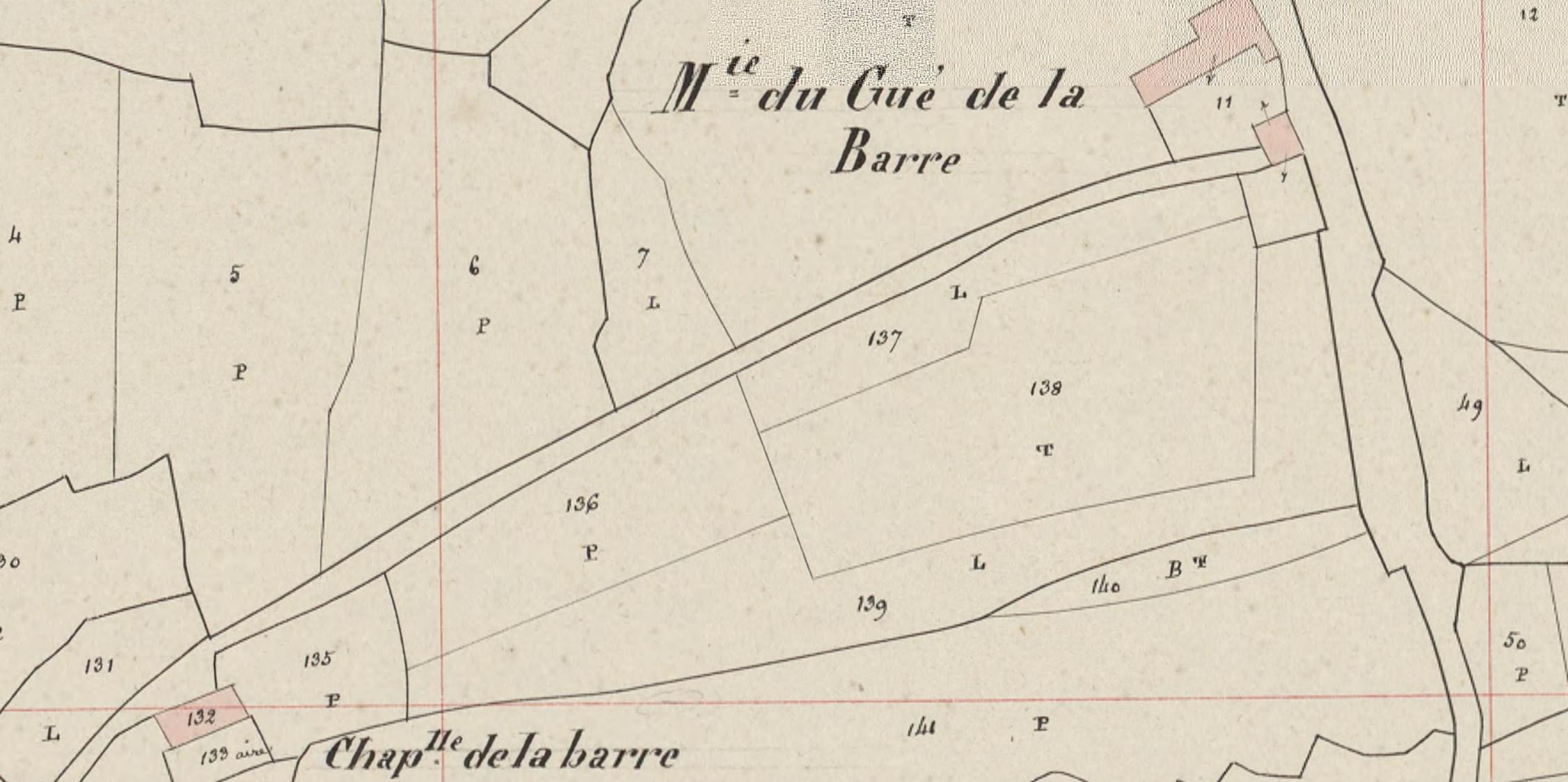 Chapelle Notre-Dame de la Barre. Extrait du plan cadastral de 1840 (AD Morbihan, 3 P 217)Immatriculation
