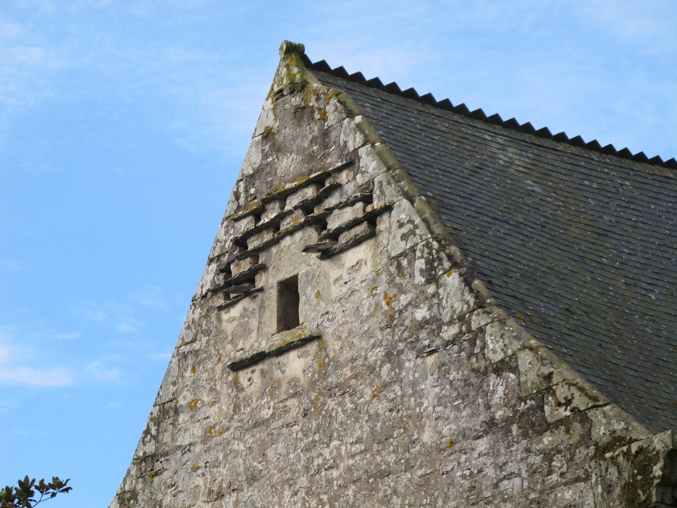 Carnoguin, grange seigneuriale, détail du pignon avec pigeonnierImmatriculation