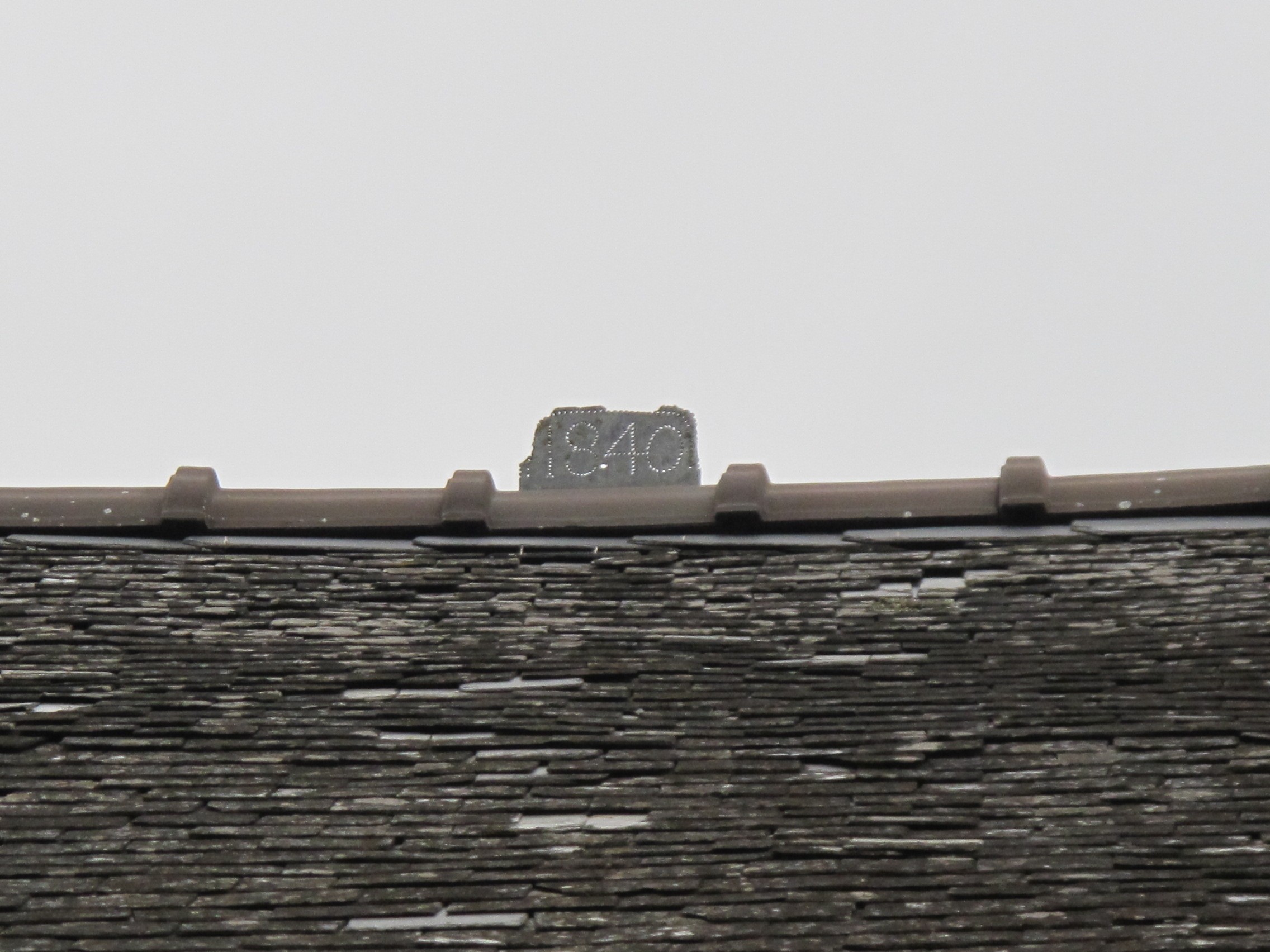 La Ville Boury, lignolet ancien daté 1840 remployé sur faîtage moderneImmatriculation