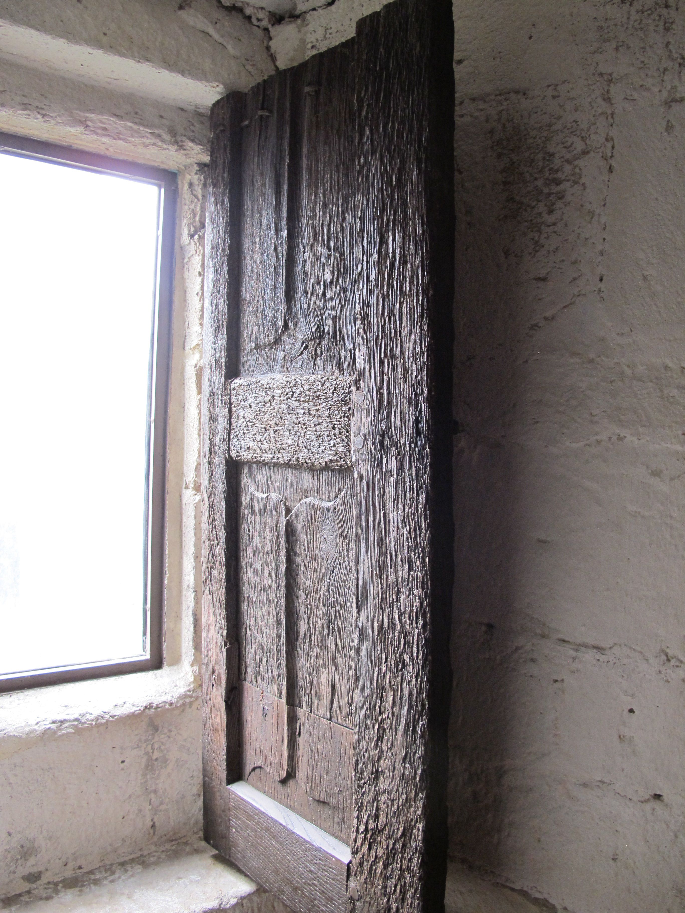 Corps secondaire nord, second étage, fenêtre masquée derrière les lambris peint du cabinet des Pères du Désert, détail du voletImmatriculation