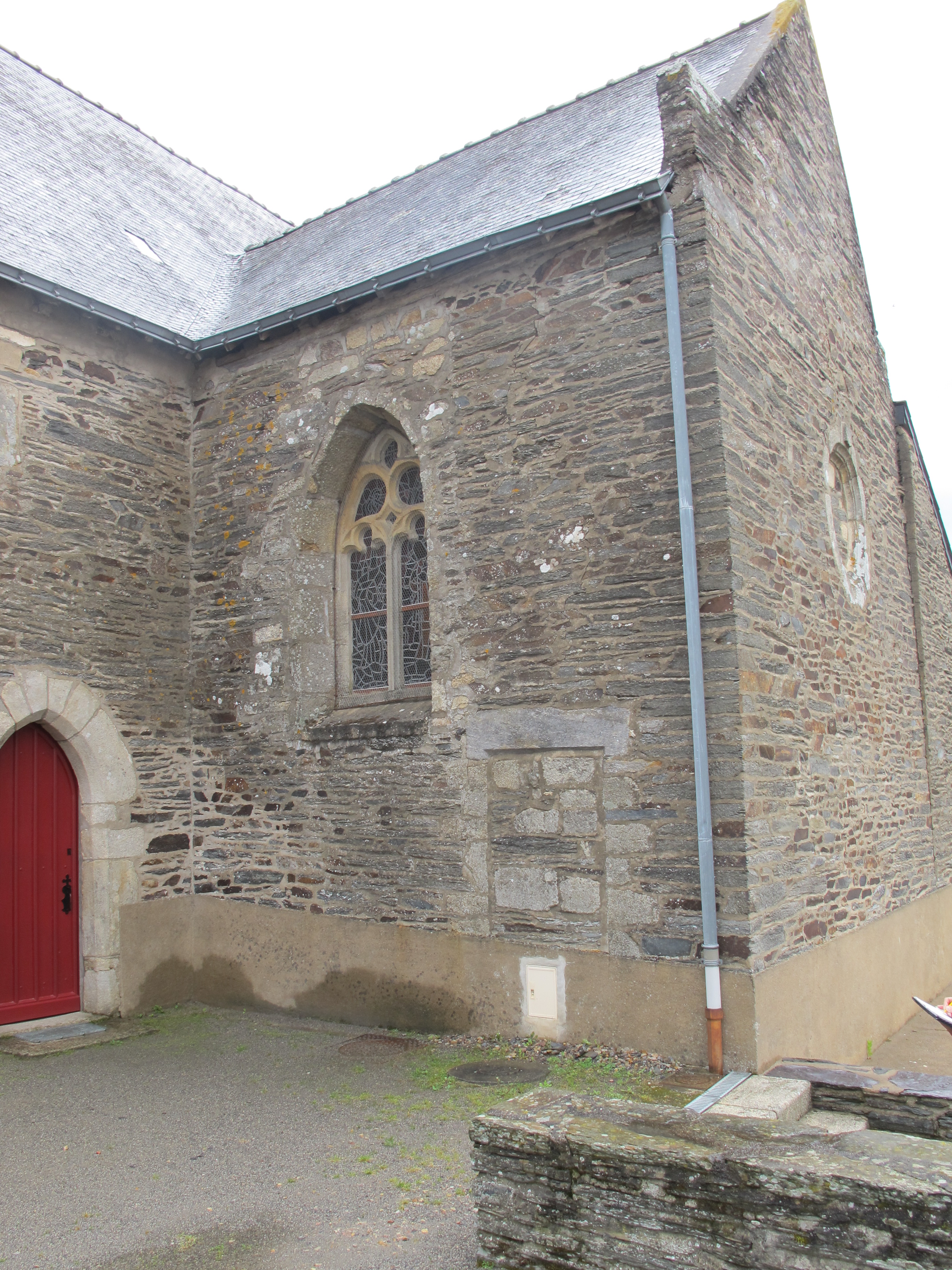 Église, bras sud du transept, mur ouest : la baie et la porte murée (état en 2013)Immatriculation