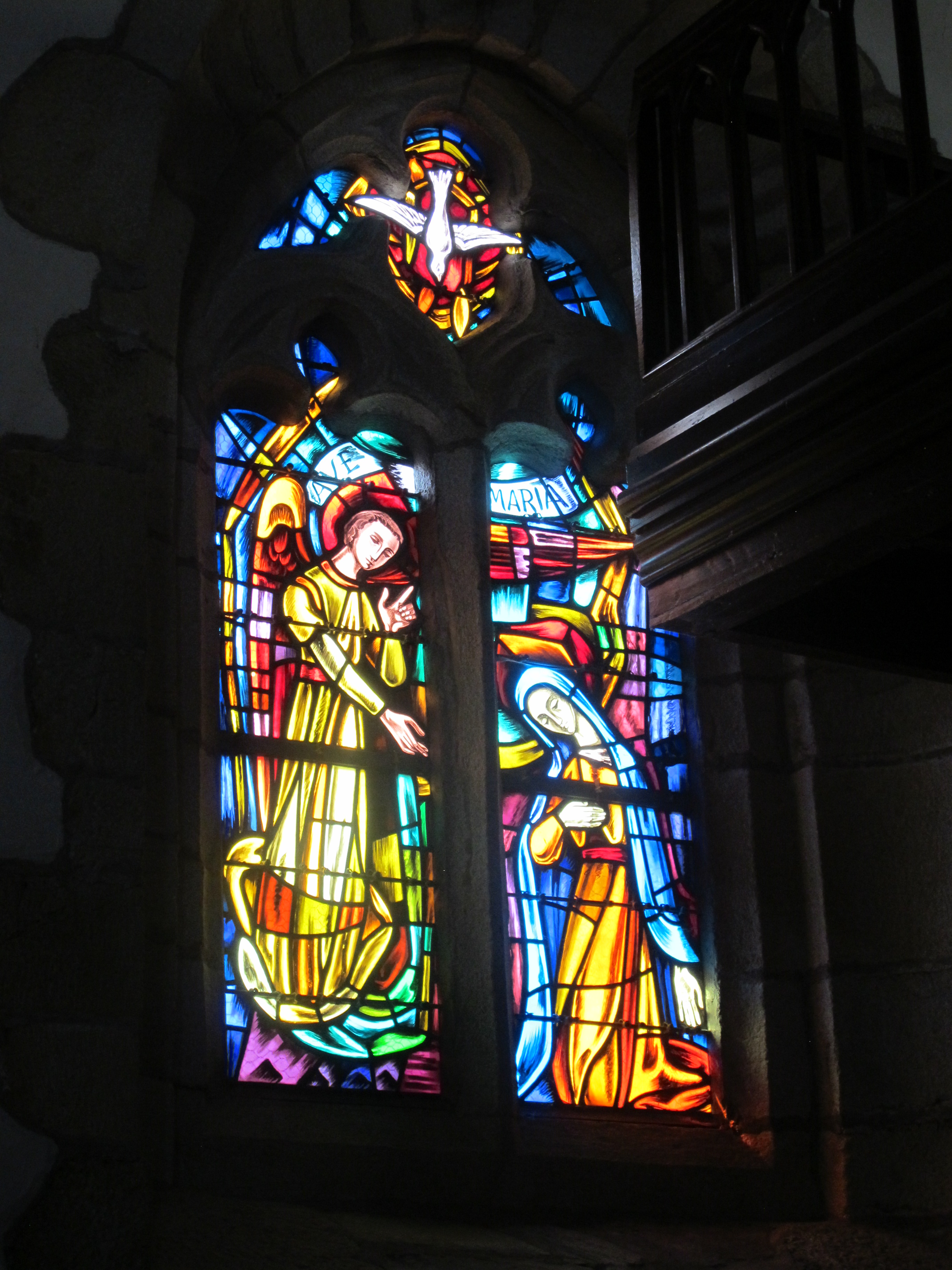 Verrière de la baie 6 (nef, mur sud) : Annonciation (état en 2013)Immatriculation