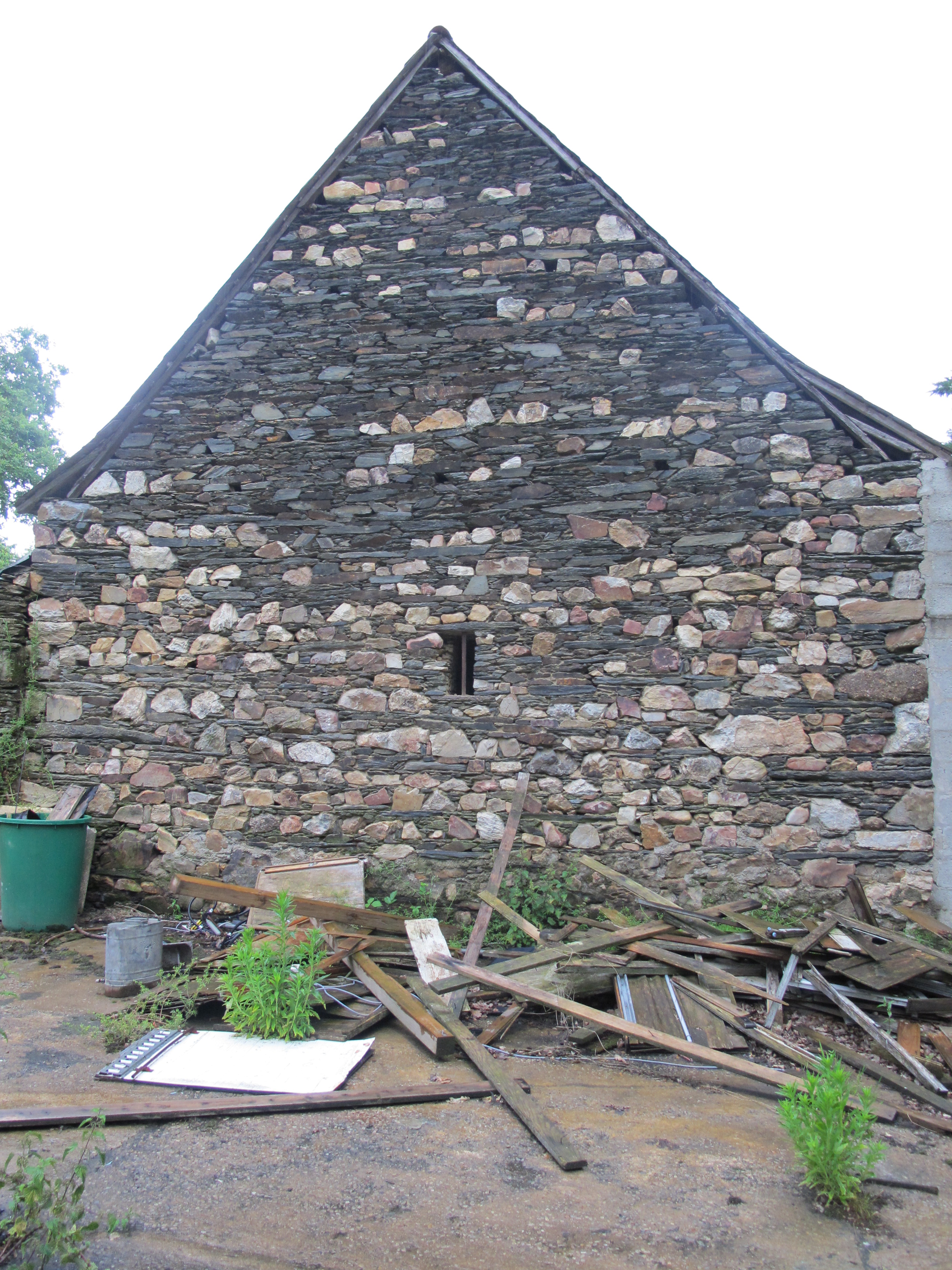 La Loirie, ferme 1 : mélange des matériaux (schiste et grès) dans le pignon estImmatriculation