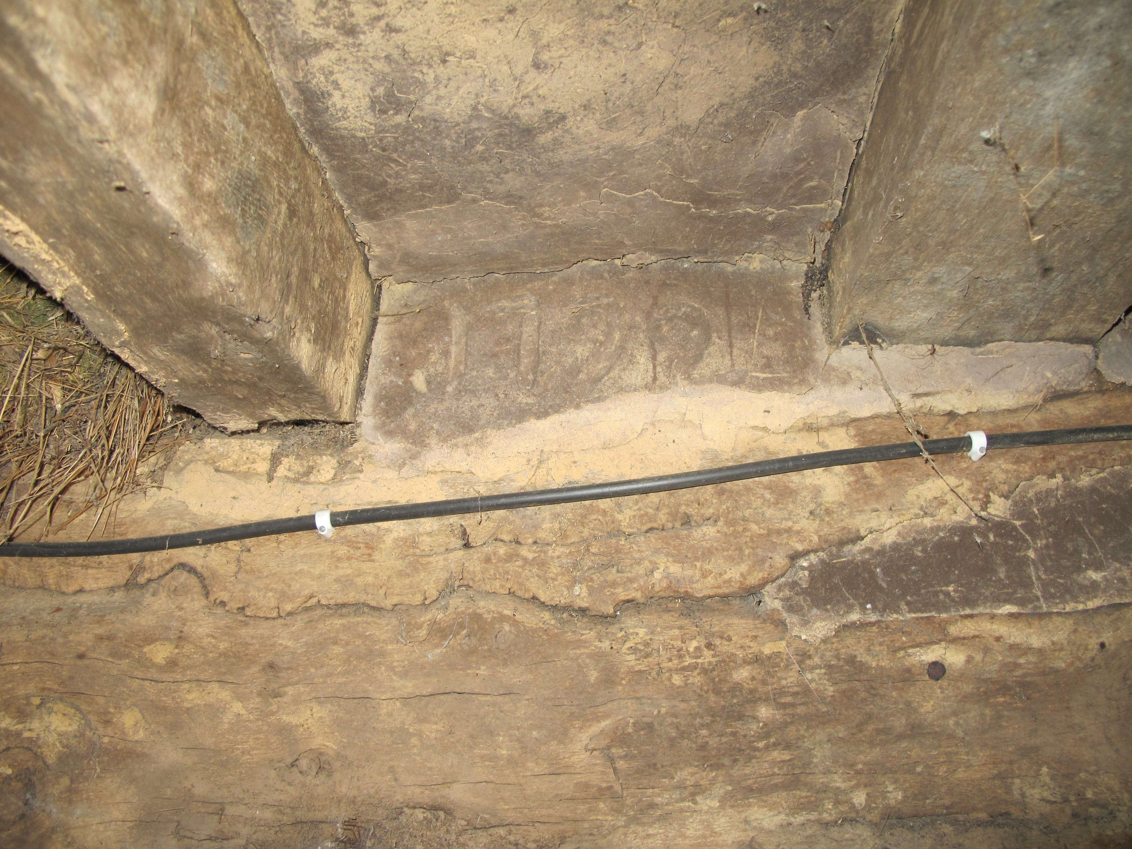 Hôté Perrigue, cellier : date 1792 tracée au doigt dans la terre d'isolation entre deux solivesImmatriculation