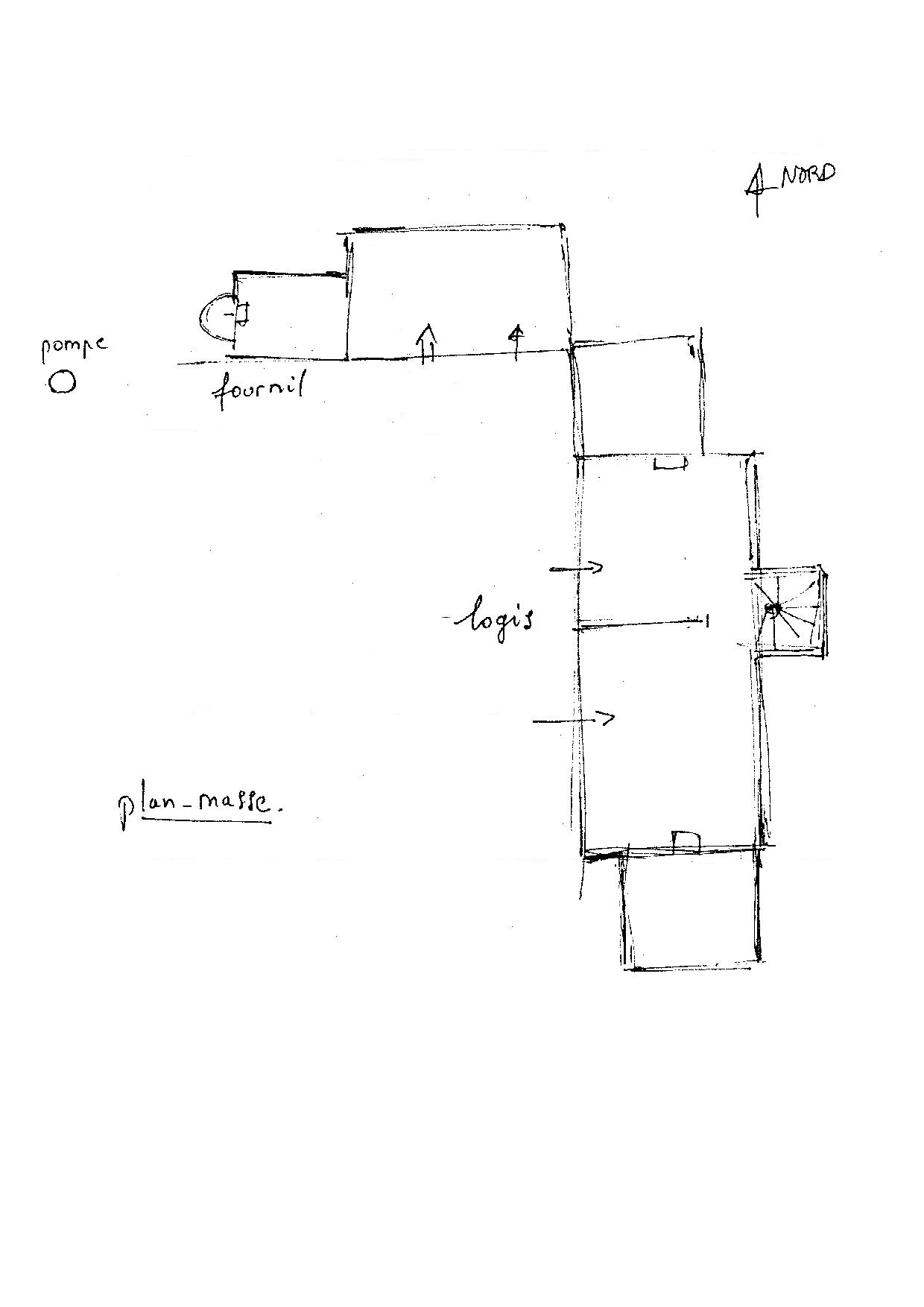 Manoir : plan masse (schéma réalisé par J. P. Ducouret en 1983)Immatriculation