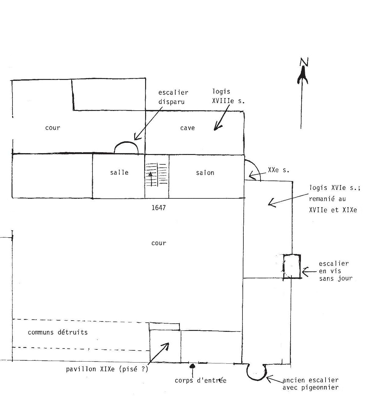 Manoir : plan de masse schématique (J. P. Ducouret, 1986)Immatriculation