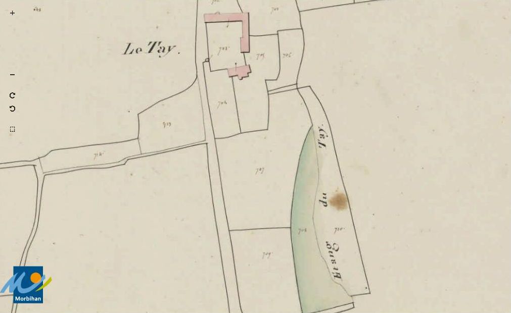 Le manoir du Thay sur le cadastre de 1829 (A. D. du Morbihan, 3 P 75/4)Immatriculation
