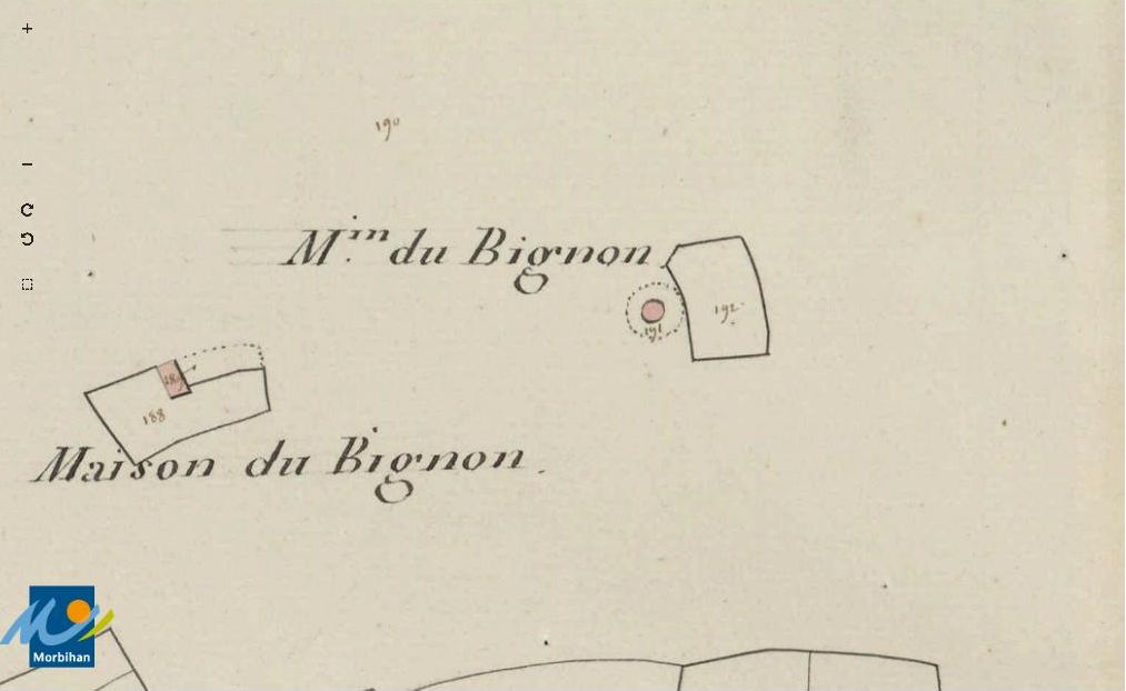 Le moulin à vent du Bignon sur le cadastre de 1829 (A. D. du Morbihan, 3 P 75/6)Immatriculation