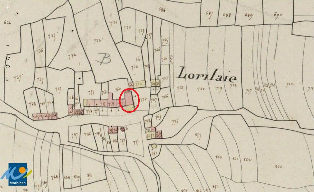 La maison de la Lorilaie sur le cadastre de 1829 (A. D. du Morbihan, 3 P 75/16)Immatriculation