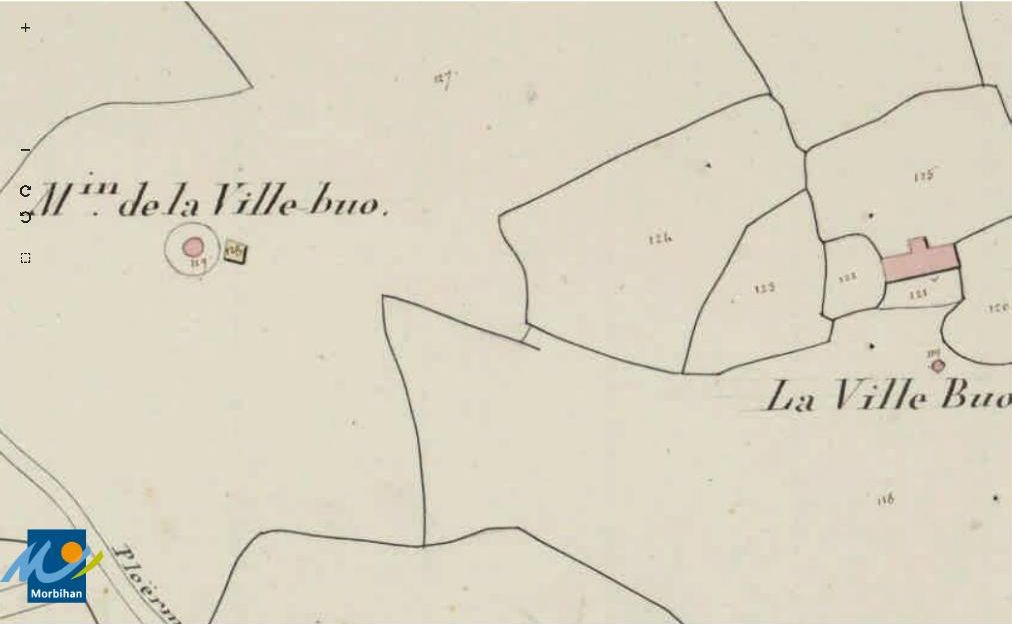 Le moulin à vent de la Ville Buo sur le cadastre de 1829 (A. D. du Morbihan, 3 P 75/17)Immatriculation