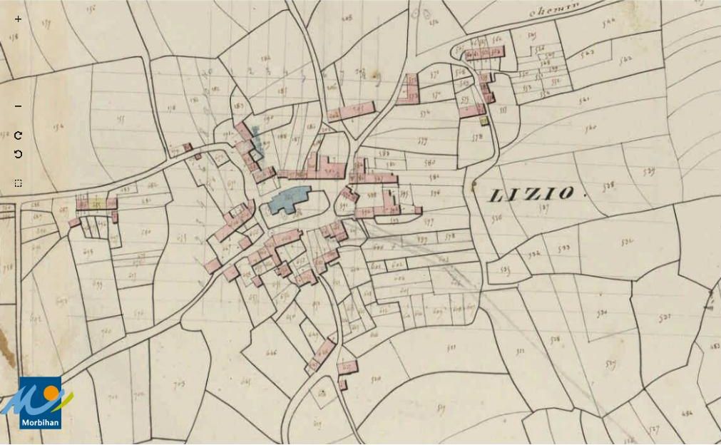 L'église (en bleu) sur le cadastre de 1829 (A. D. du Morbihan, 3 P 160/5)Immatriculation