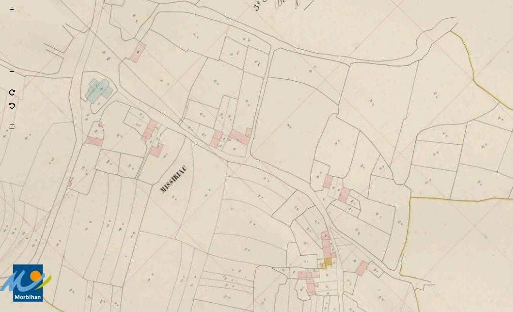 Le village de Missiriac sur le cadastre de 1840 (A. D. du Morbihan, série 3 P 180/17)Immatriculation