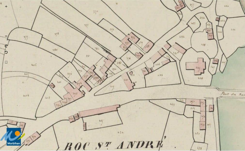 Le bourg du Roc Saint-André sur le cadastre de 1829 (A. D. du Morbihan, 3 P 152/6)Immatriculation