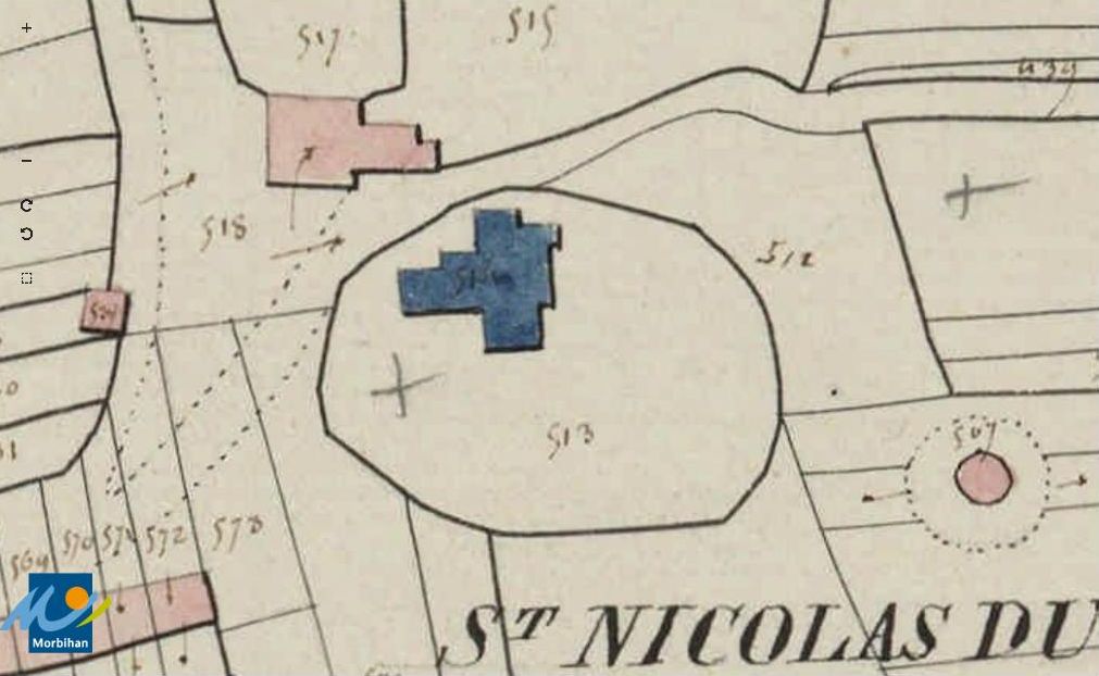 L'église paroissiale sur le cadastre de 1829 (A. D. du Morbihan, 3 P 270/2)Immatriculation