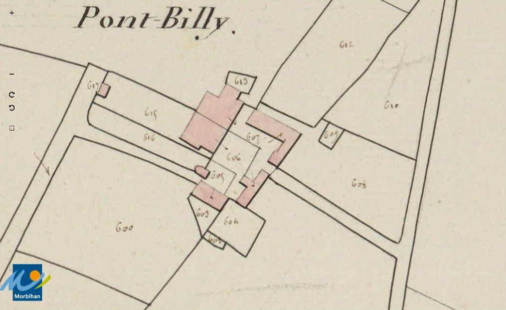 Le manoir de Pont Bily sur le cadastre de 1829 (A. D. du Morbihan, 3 P 270/2)Immatriculation