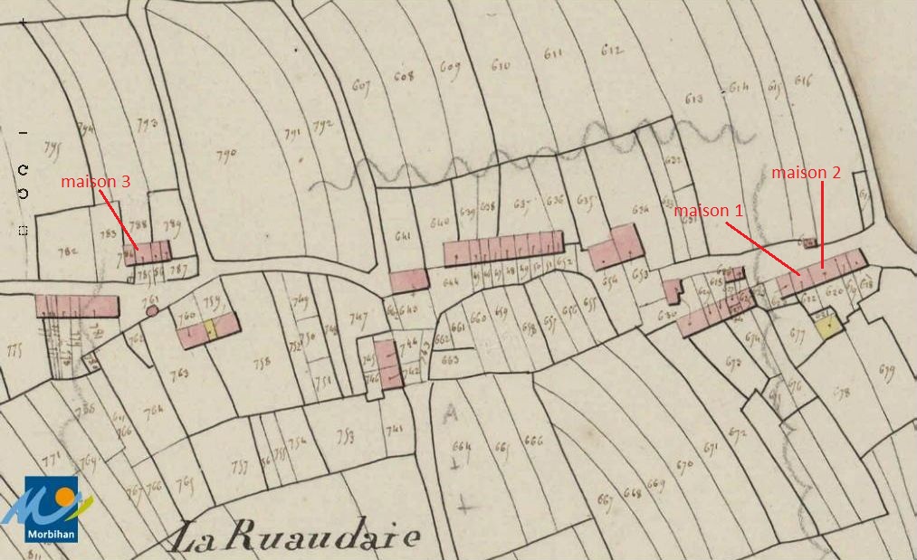 La maison 2 de la Ruaudais sur le cadastre de 1829 (A. D. du Morbihan, 3 P 270/3)Immatriculation