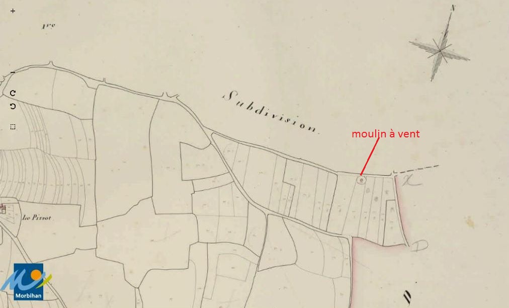 Un moulin à vent sans nom à l'est du Pissot (A. D. du Morbihan, 3 P 244/5)Immatriculation
