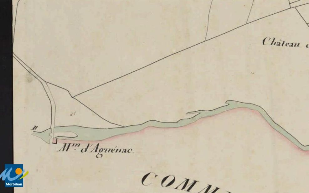 Le moulin à eau d'Aguénac sur le cadastre de 1829 (A. D. du Morbihan, série 3 P 286/2)Immatriculation