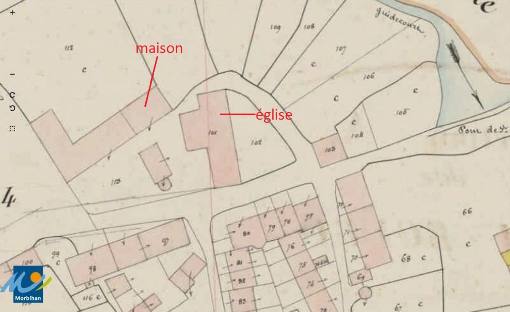 L'église paroissiale sur le cadastre de 1840 (A. D. du Morbihan, série 3 P 264/5)Immatriculation
