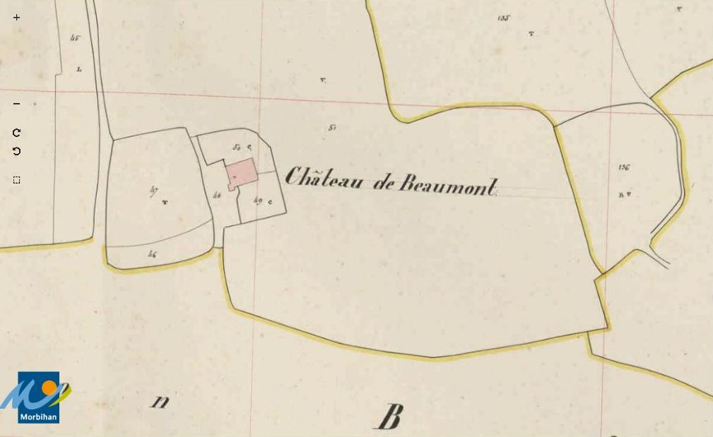 Le manoir de Beaumont sur le cadastre de 1840 (A. D. du Morbihan, série 3 P 264/12)Immatriculation
