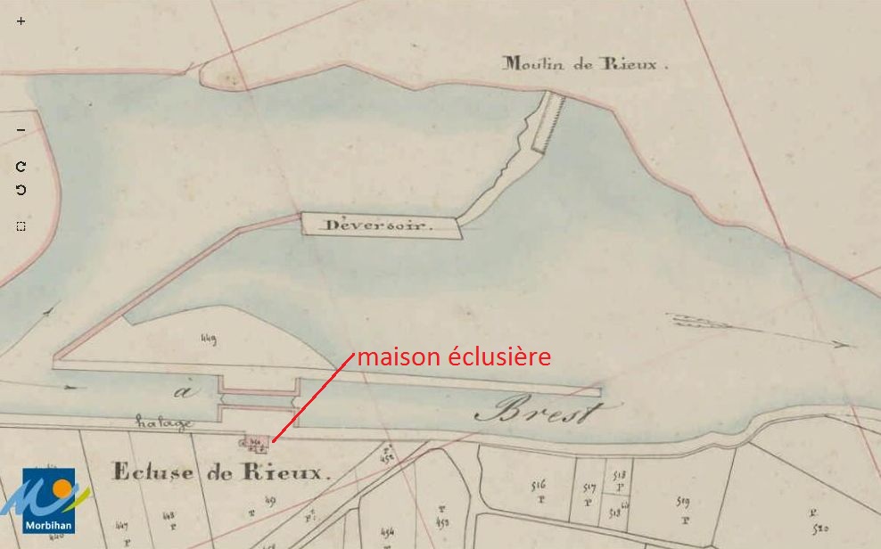 Le site d'écluse de Rieux sur le cadastre de 1841 (A. D. du Morbihan, série 3 P 253/16)Immatriculation