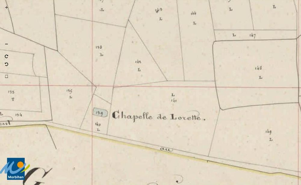 La chapelle ND de Lorette sur le cadastre de 1841 (A. D. du Morbihan, série 3 P 253/25)Immatriculation