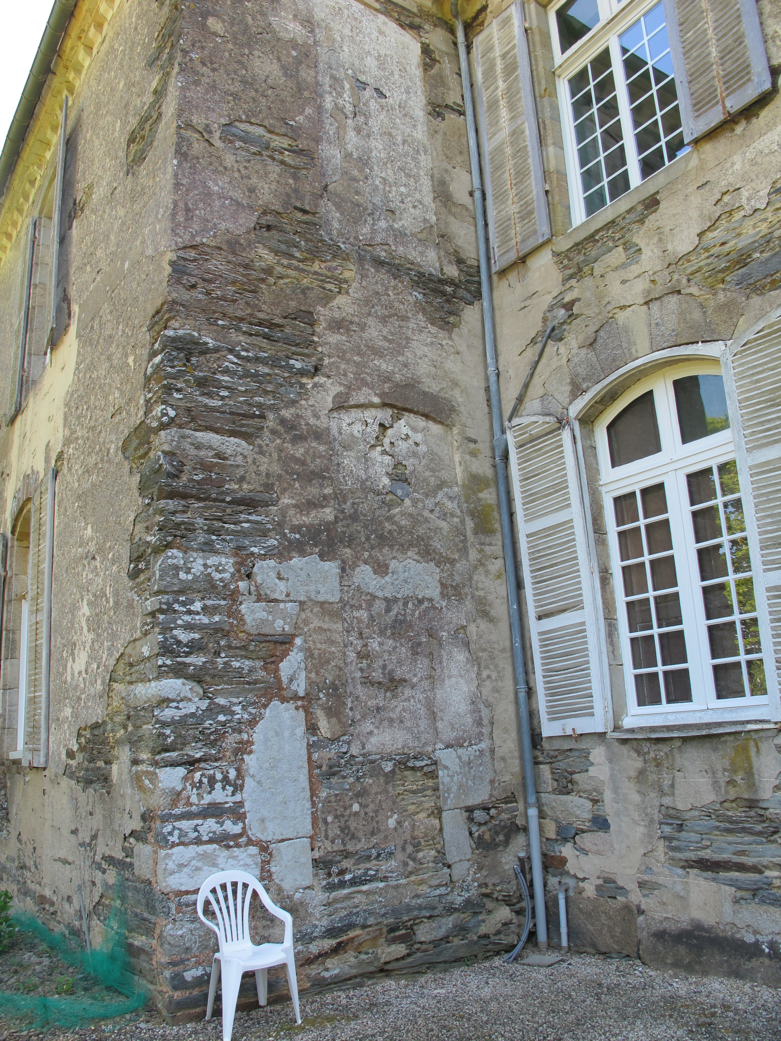 Château, élévation ouest, partie nord : sur le mur sud, les deux fenêtres ont été bouchées et repeintes en trompe-l'œil (état en 2013)Immatriculation