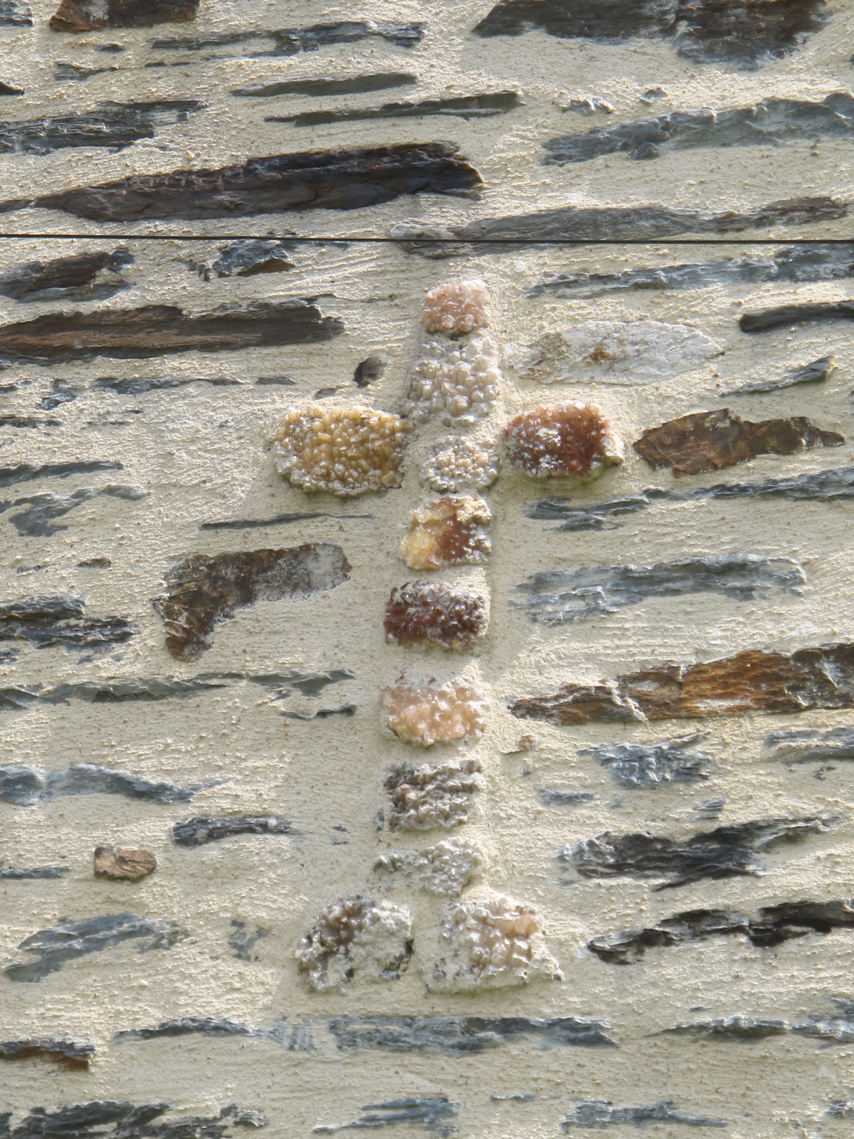 Au sud de la Croix Piguel, la maison Gru, maison : croix en cristaux de quartz, dans le mur-pignon ouest (état en 2013)Immatriculation