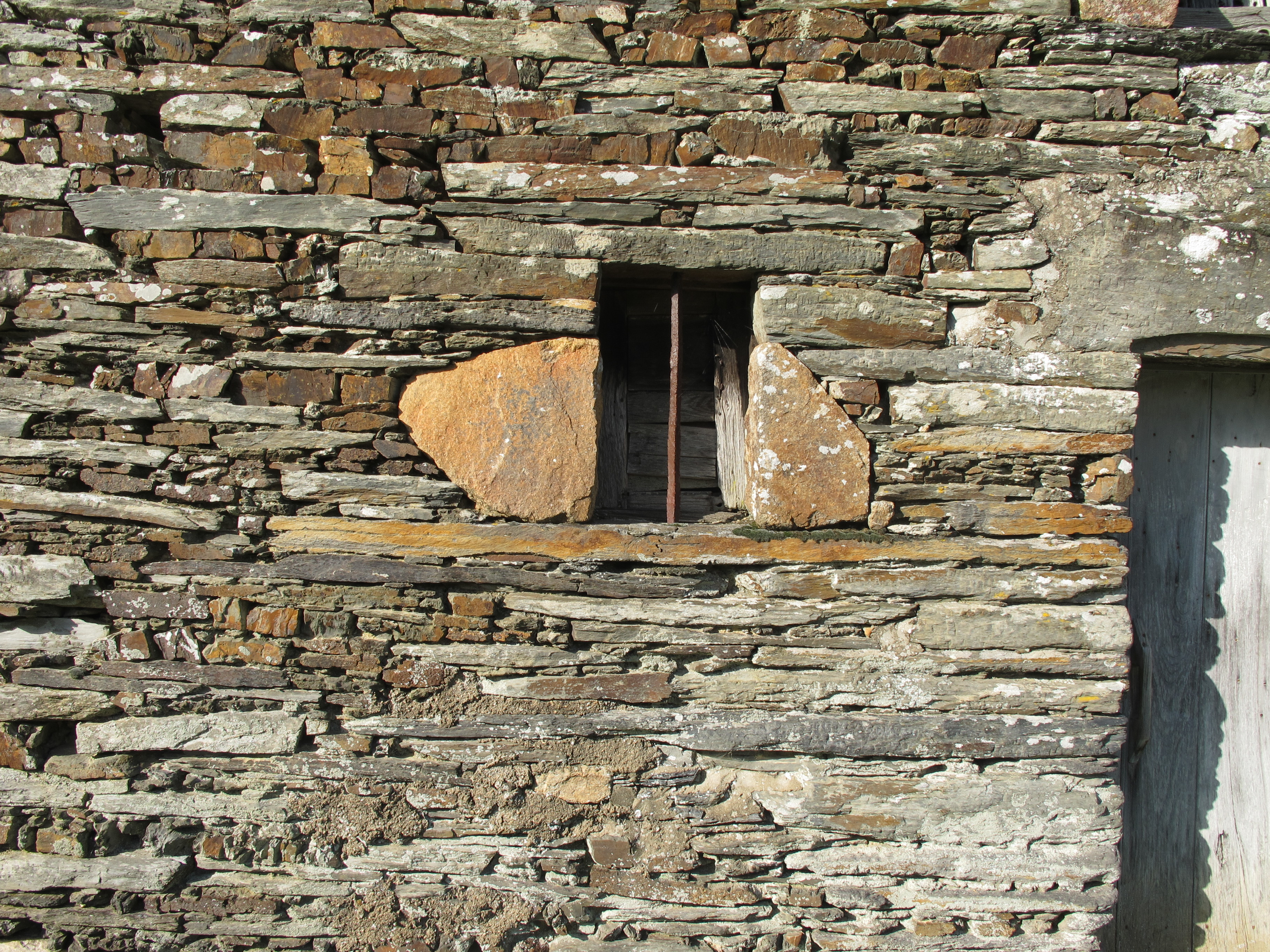 La Rotière, ferme : la fenêtre à linteau et appui en lame de schiste (état en 2013)Immatriculation