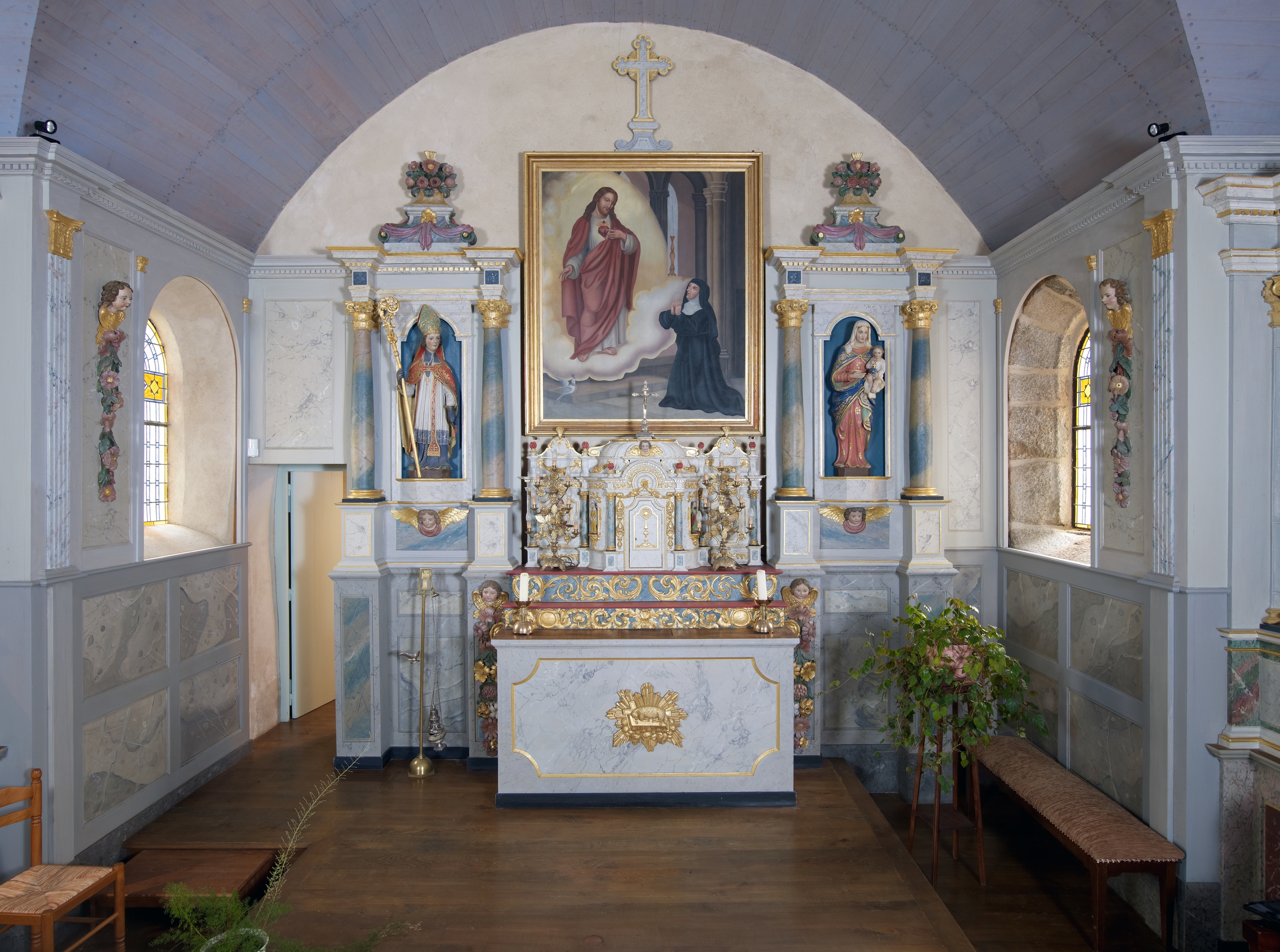 Mantallot, le bourg : église paroissiale Saint Médéric, vue intérieure, chœur, maitre-autelImmatriculation