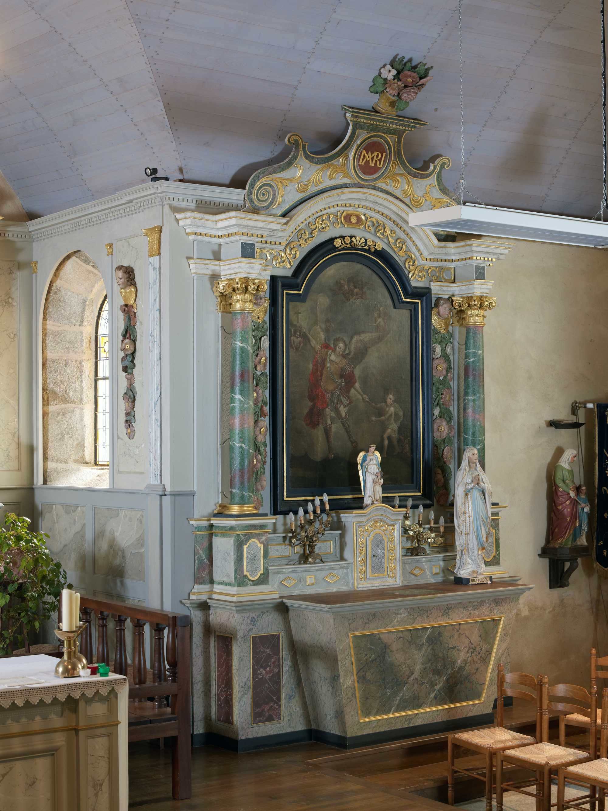 Mantallot, le bourg : église paroissiale Saint Médéric, vue intérieure, retable sudImmatriculation