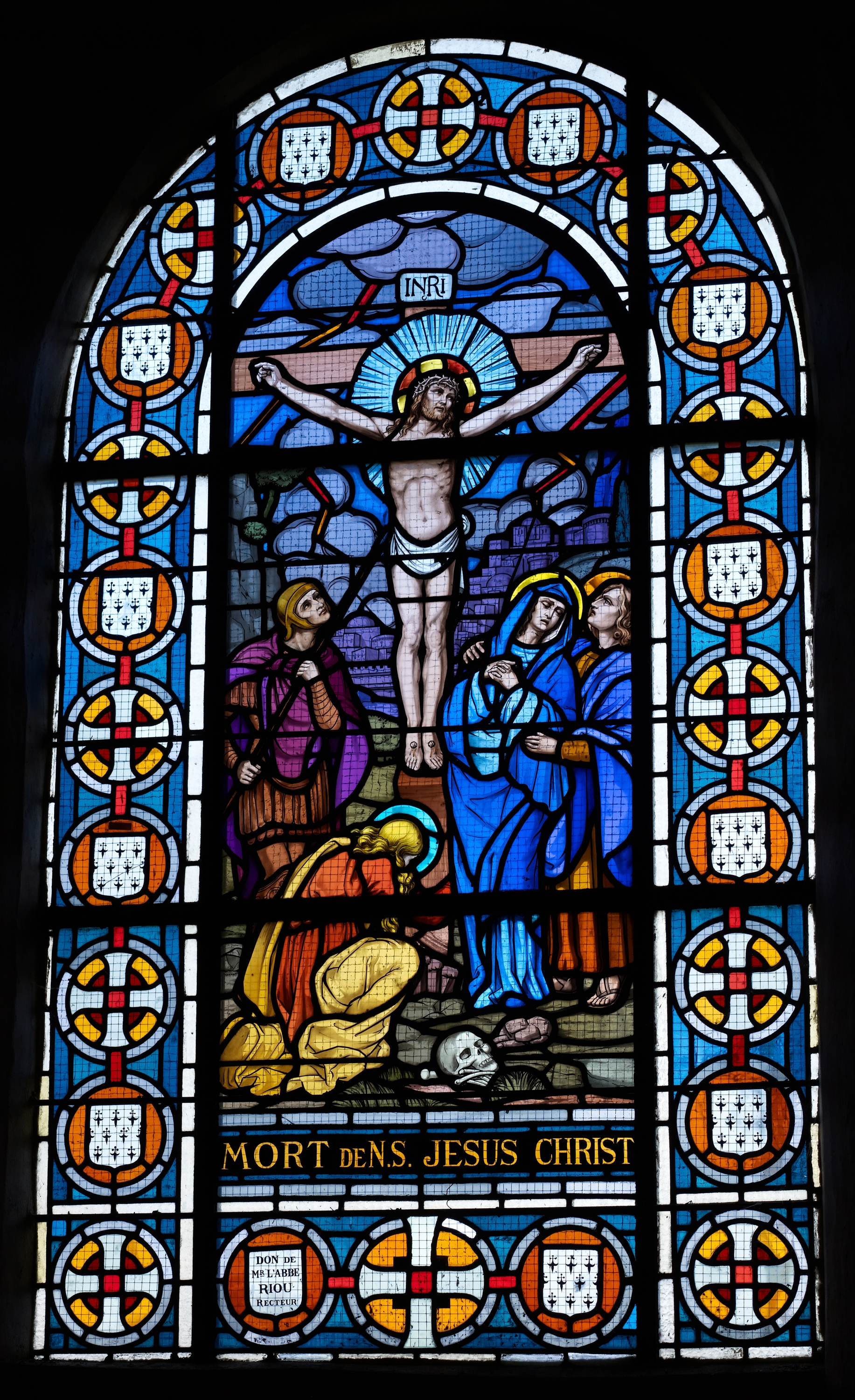 Mantallot, le bourg : église paroissiale Saint Médéric, vue intérieure, vitrailImmatriculation
