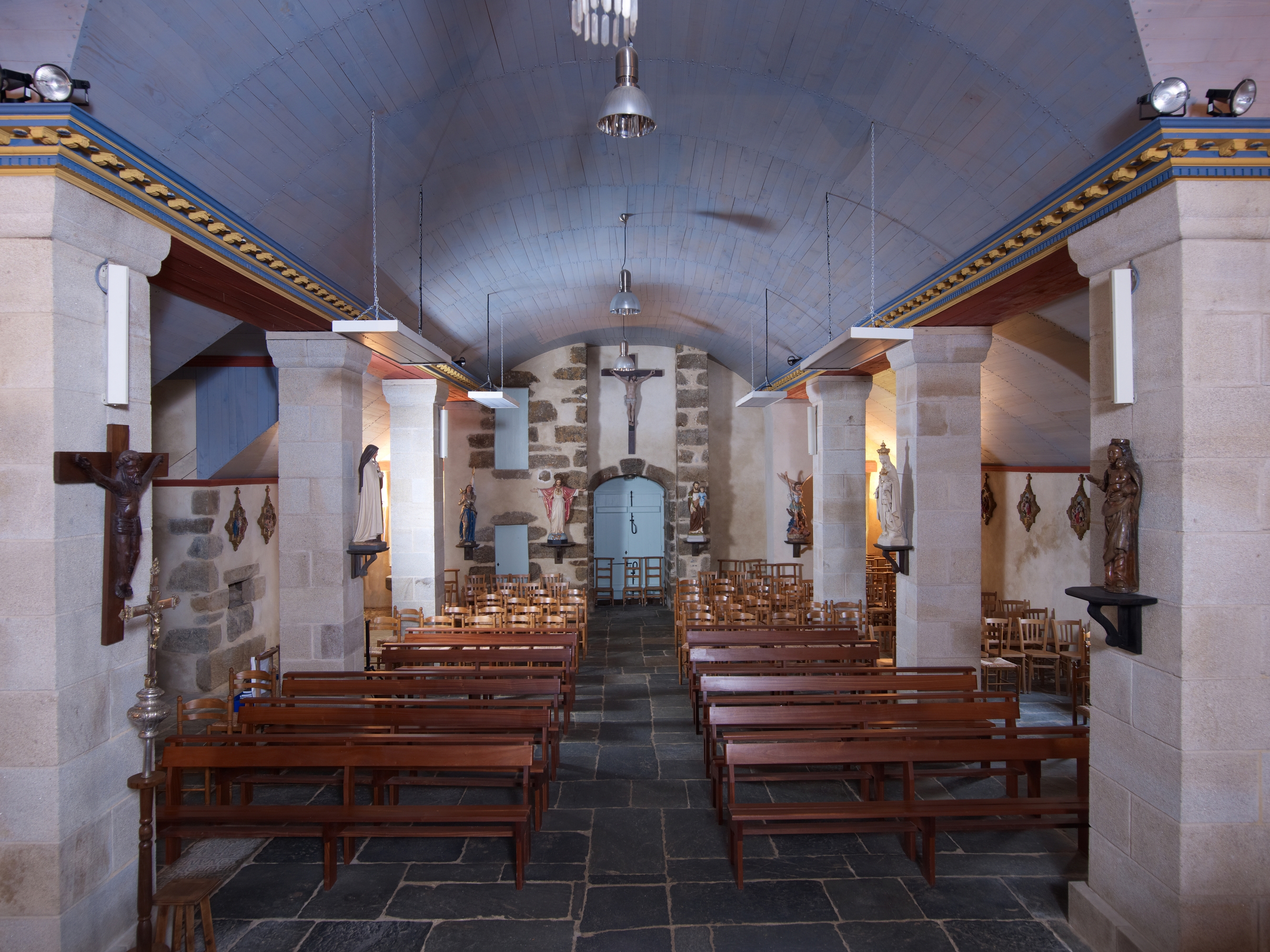 Mantallot, le bourg : église paroissiale Saint Médéric, vue intérieure vers la nefImmatriculation