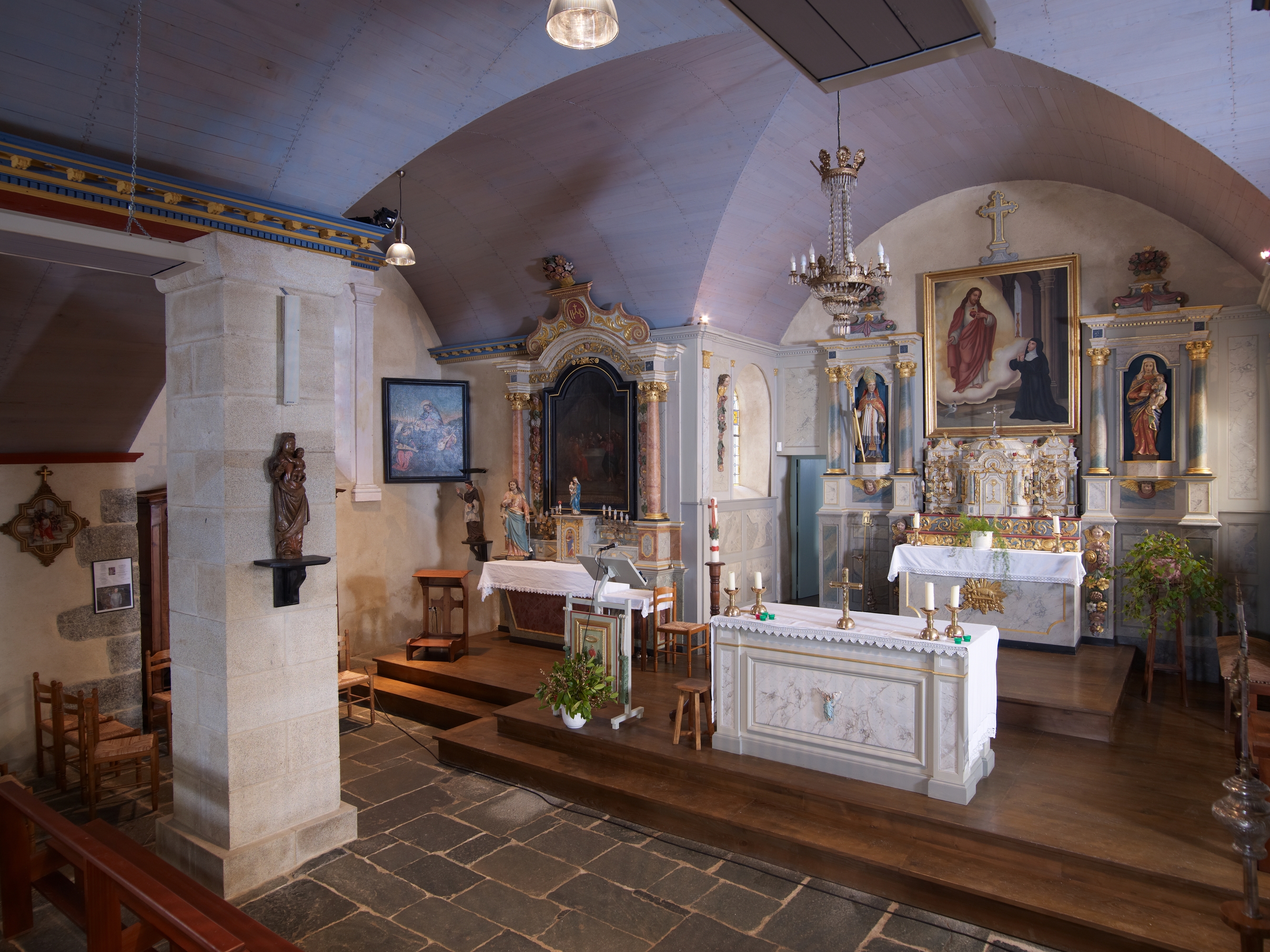 Mantallot, le bourg : église paroissiale Saint Médéric, vue intérieure vers le chœur et le maitre-autelImmatriculation