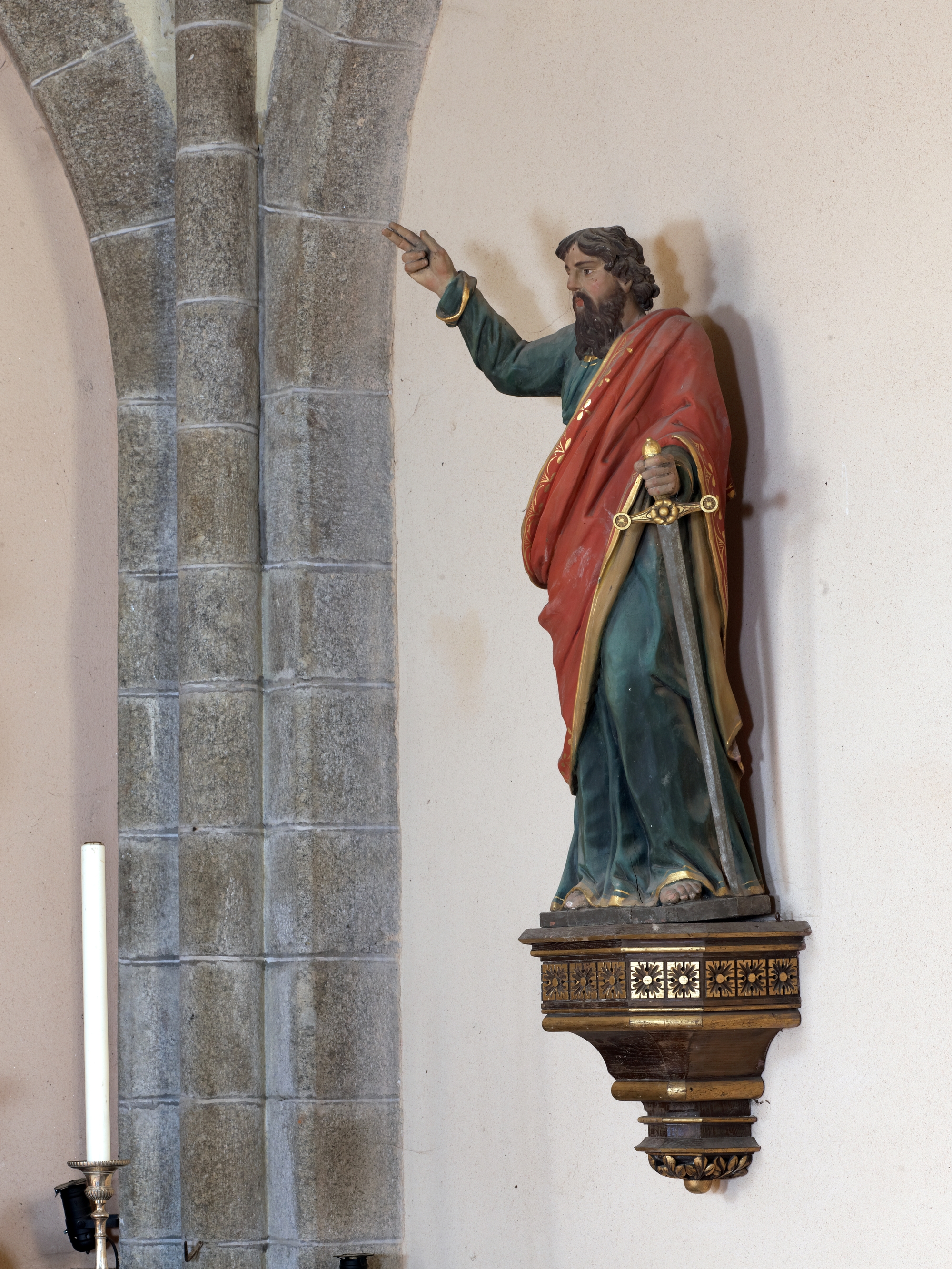 Ploubezre : église paroissiale, vue intérieure, chœur, maitre-autel, statue droiteImmatriculation