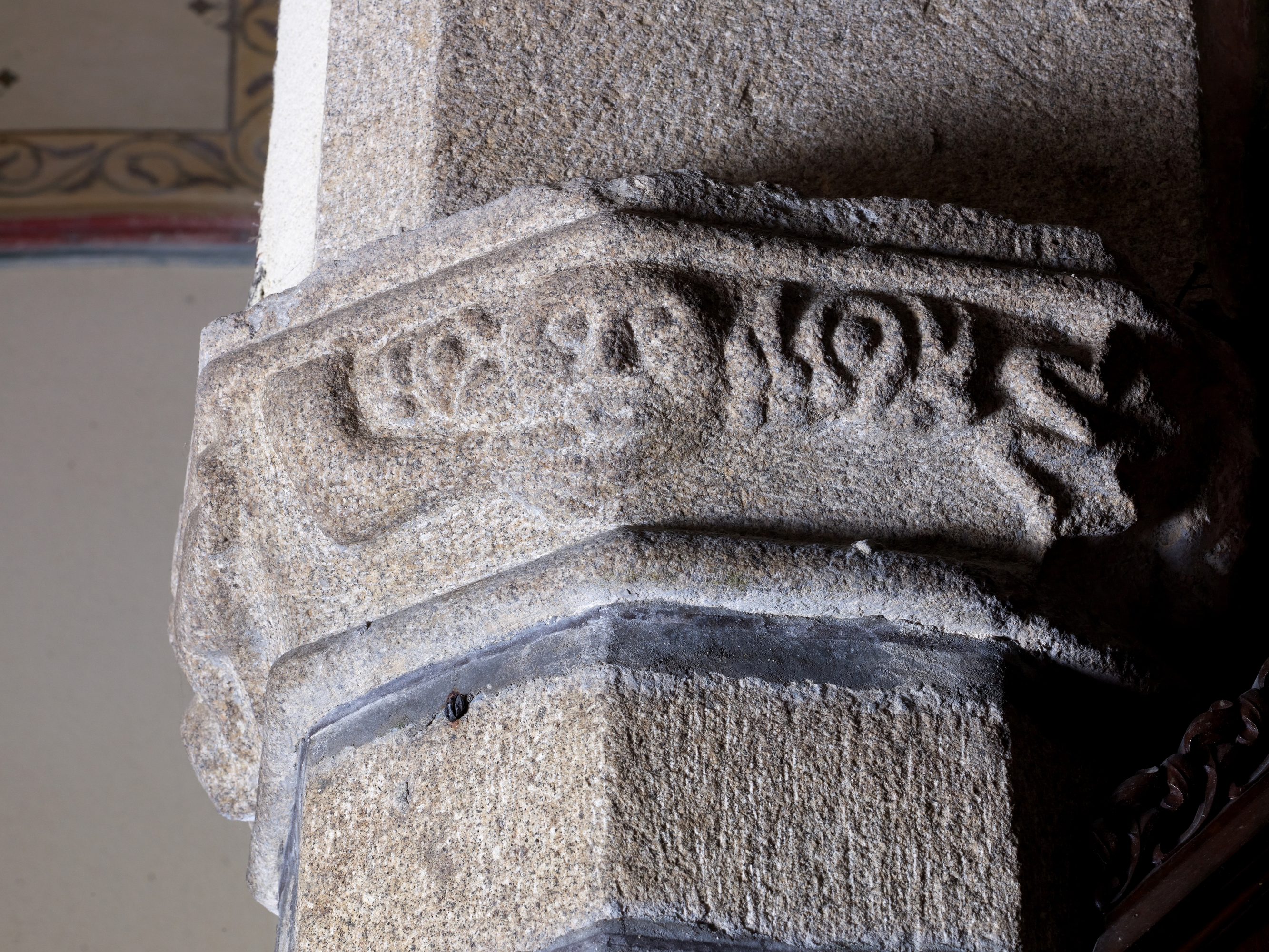 Ploubezre : église paroissiale, vue intérieure, chapiteau romanImmatriculation