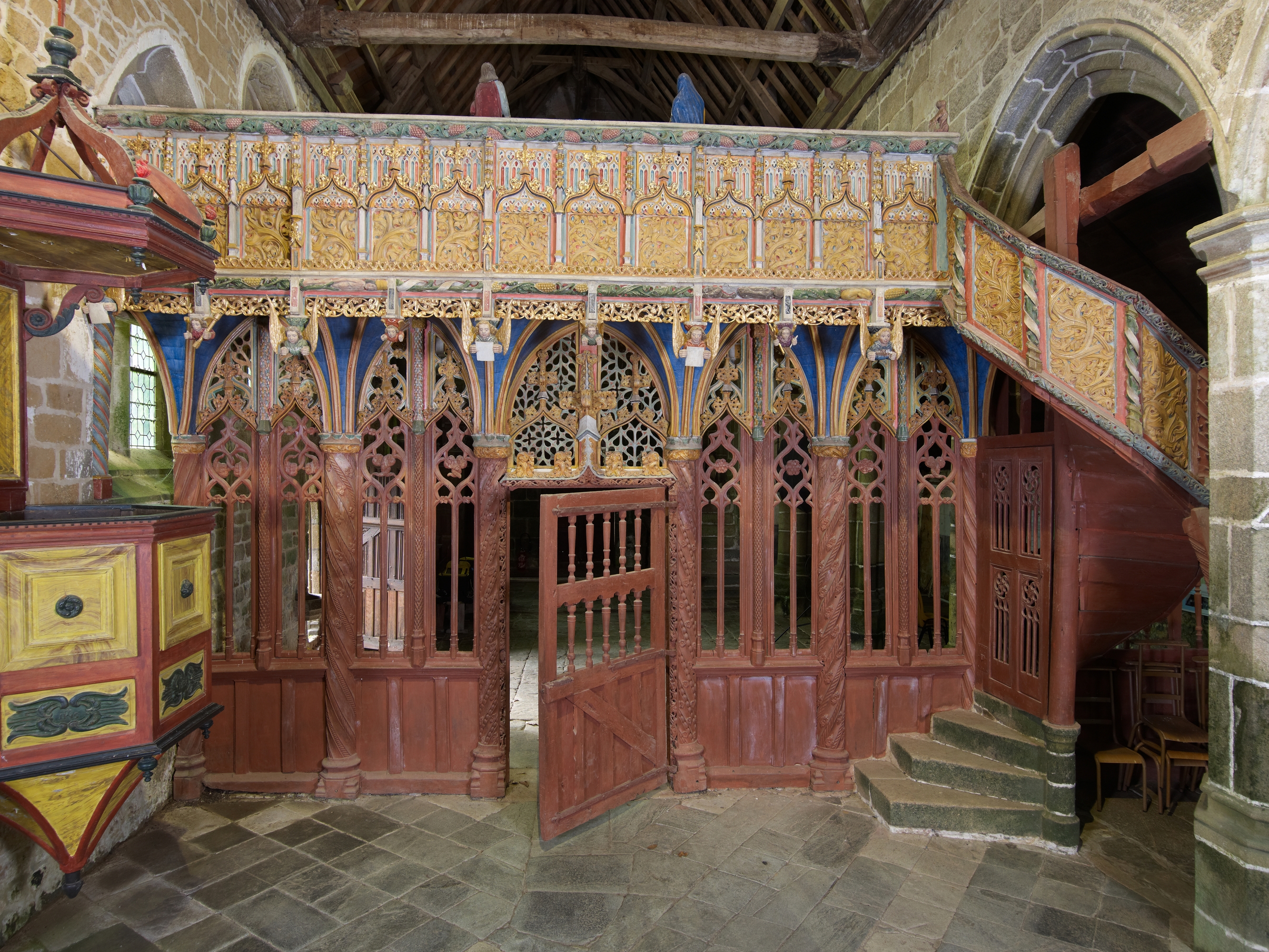 Ploubezre : chapelle de Kerfons, vue générale du jubé, face estImmatriculation