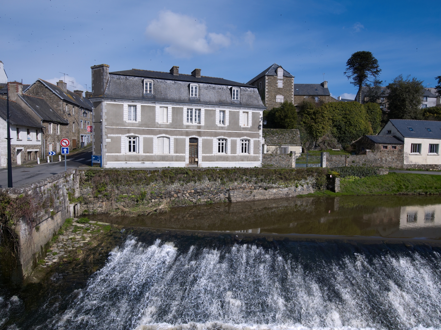 Déversoir de l'ancien moulin de la Roche au Ier plan, maison Toupin 1924 au second plan et magasin à grains 1897 au 3e plan. Vue générale sud-ouestImmatriculation